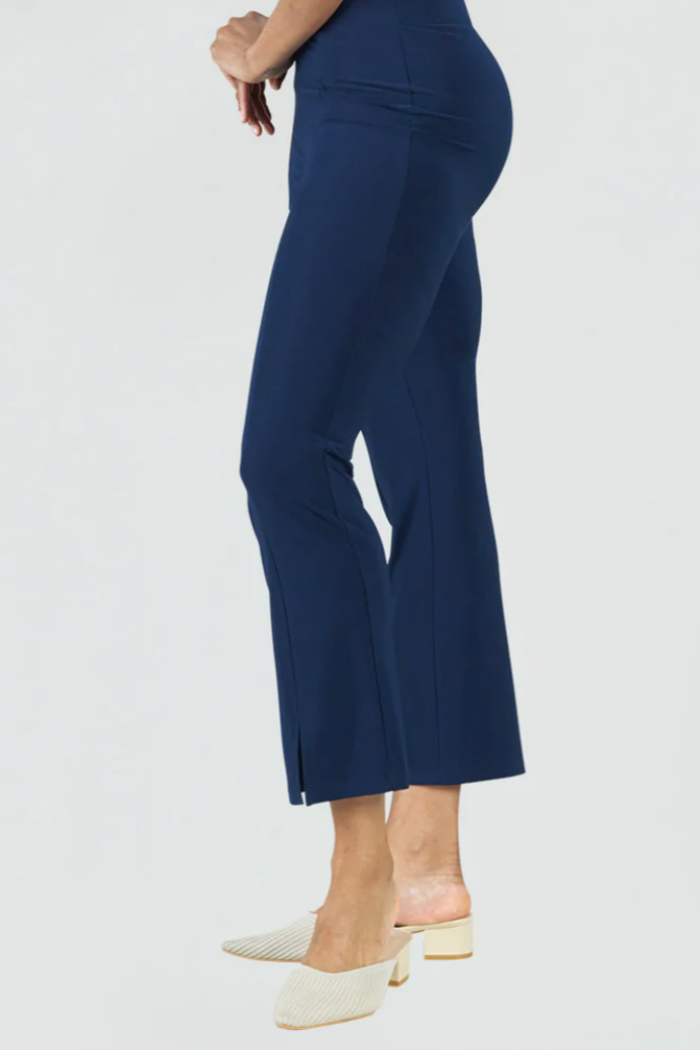 Freshen up your wardrobe by adding our chic Center Seam Front Slit Ankle Pant to it! This stylish pant features a 1” pull-on elastic waistband, vertical center leg seam with a flared ankle-length hem, and sleek front leg slit. Made to provide a slimming silhouette in the hip and thigh area while gradually flaring towards the hem.