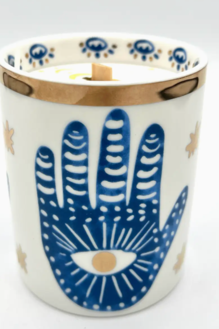 Announcing the newest luxury additions to our "Intention Line" of aromatherapy clean candles. Complex, sophisticated scent profiles and premium, plant-based ingredients like coco-soy wax and essential oils and wood wicks make for a long-lasting, luxurious candle. This beautiful ceramic and gold vessel is available in two different scent offerings: A Seductive Hinoki, Amber, Sandalwood & Musk blend or Refreshing ~ Ginger, Mandarin, Eucalyptus & Mint.
