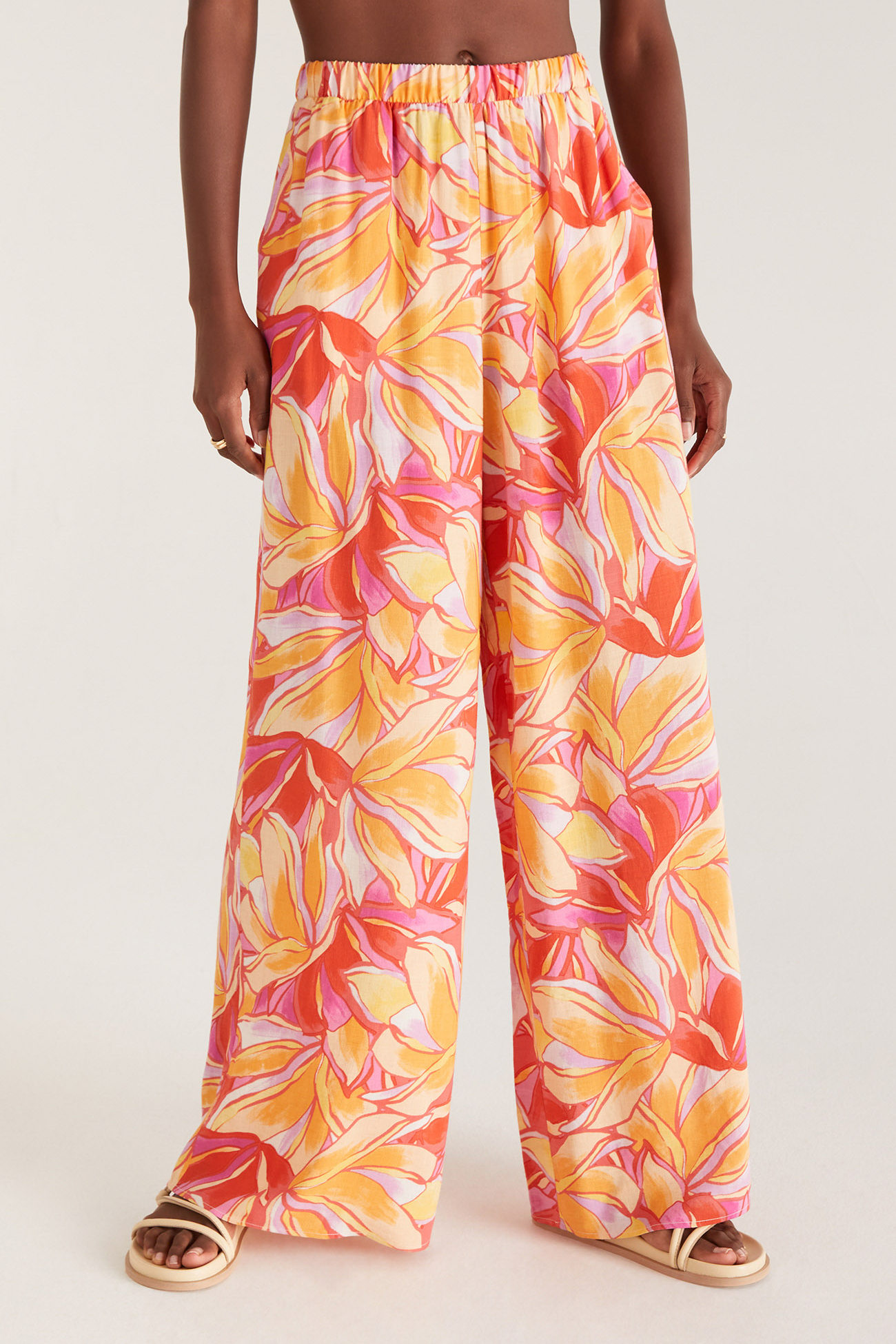 Flowy fun print pant! Jazz up your summer day. Pair with a crop or fitted top. Wedge shoes or sneakers.