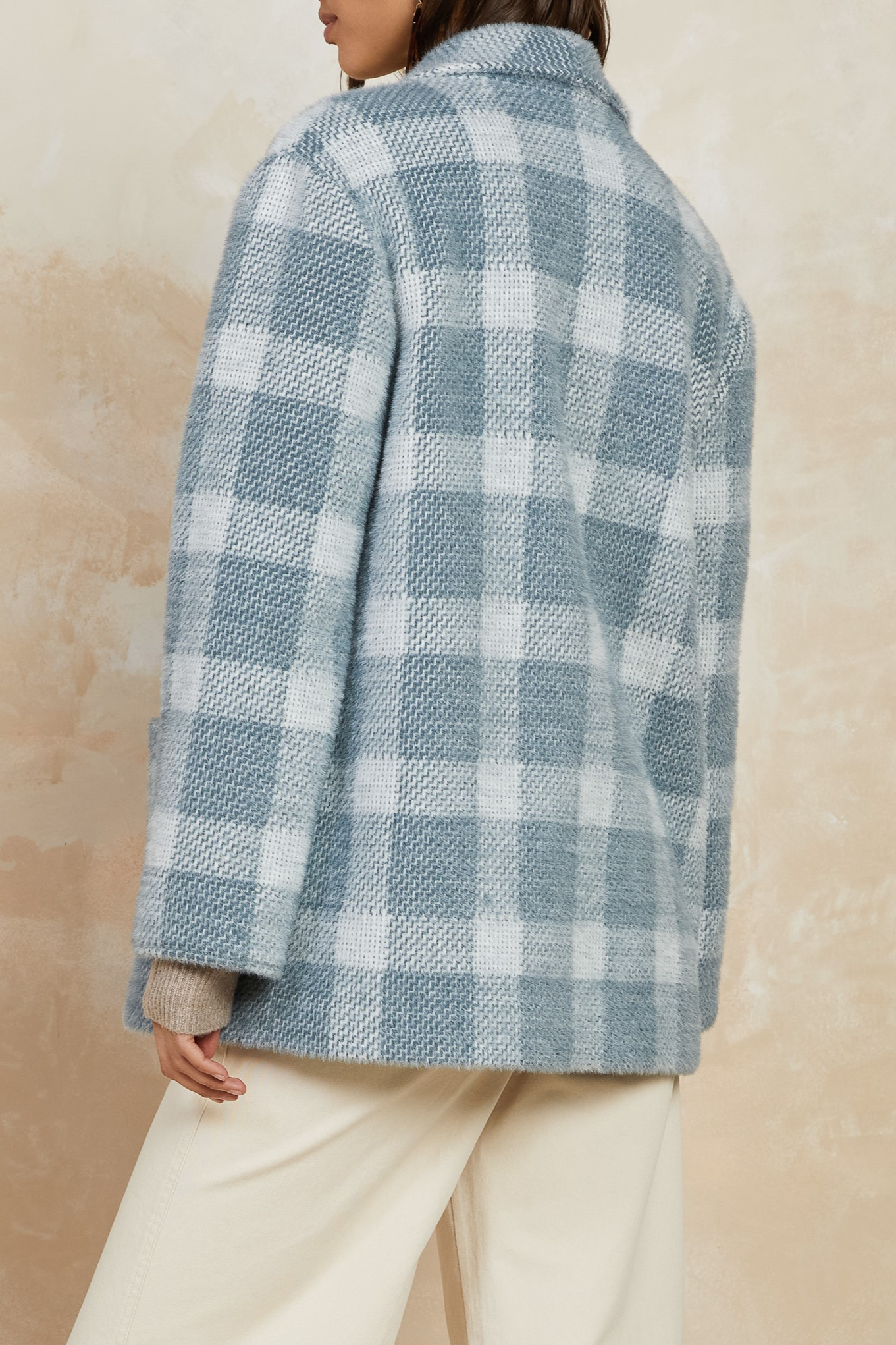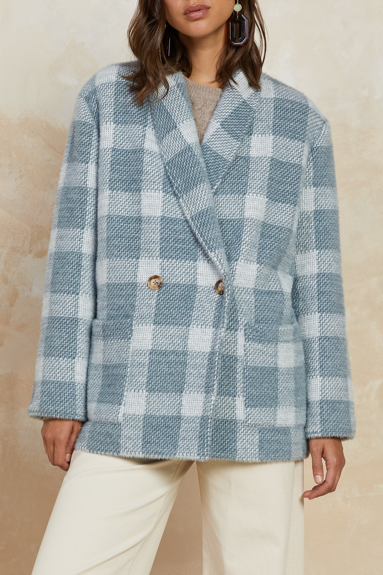 This check pattern jacket is a stylish yet cozy option to wear over an outfit when the weather starts getting colder. A relaxed fit.