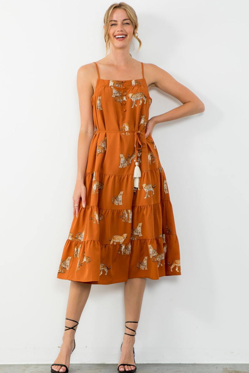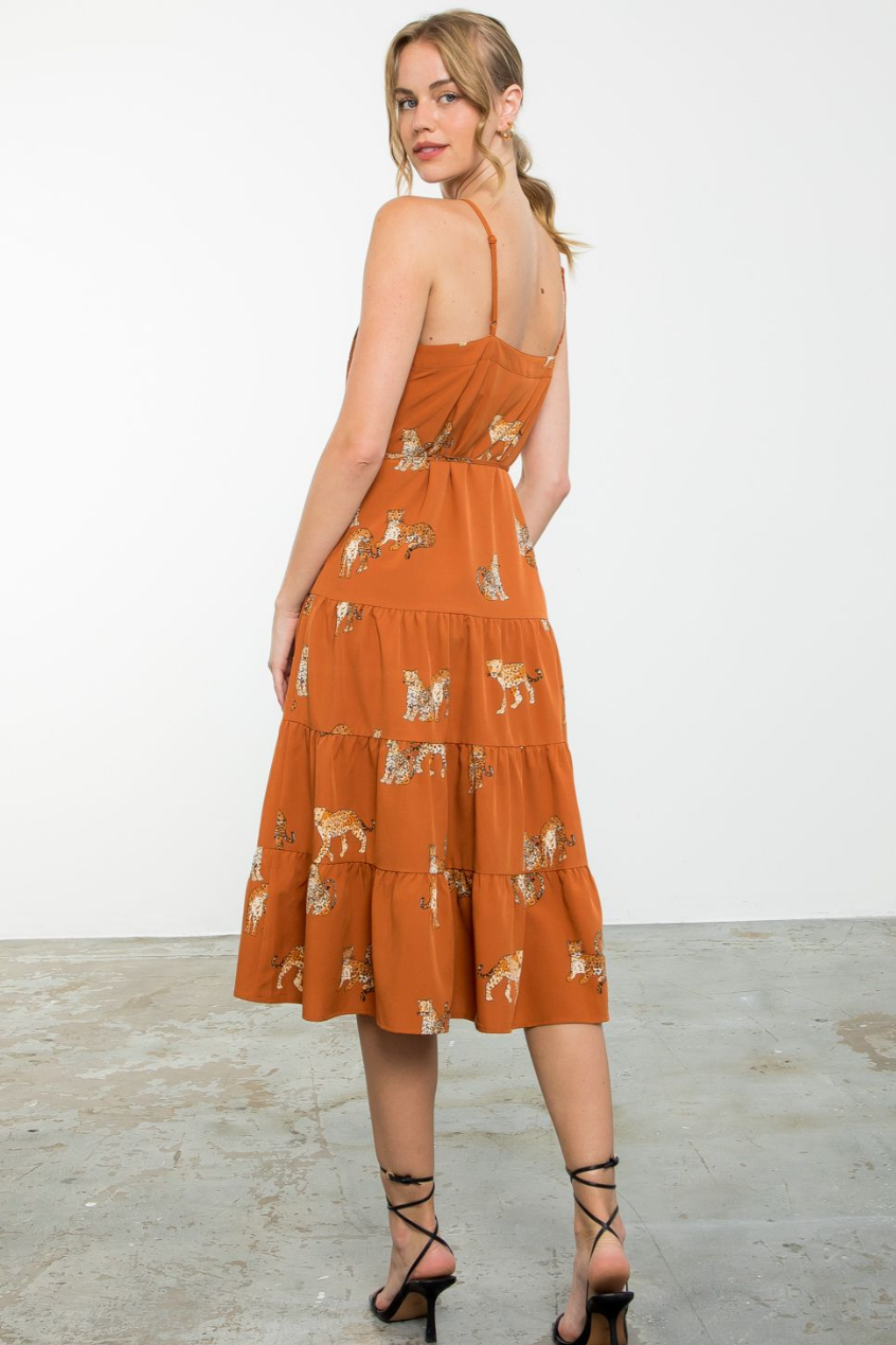 If you are looking for a fun print on a dress this is the one for you! This cheetah printed dress has a tiered style to it, making it comfortable and easy to move in.