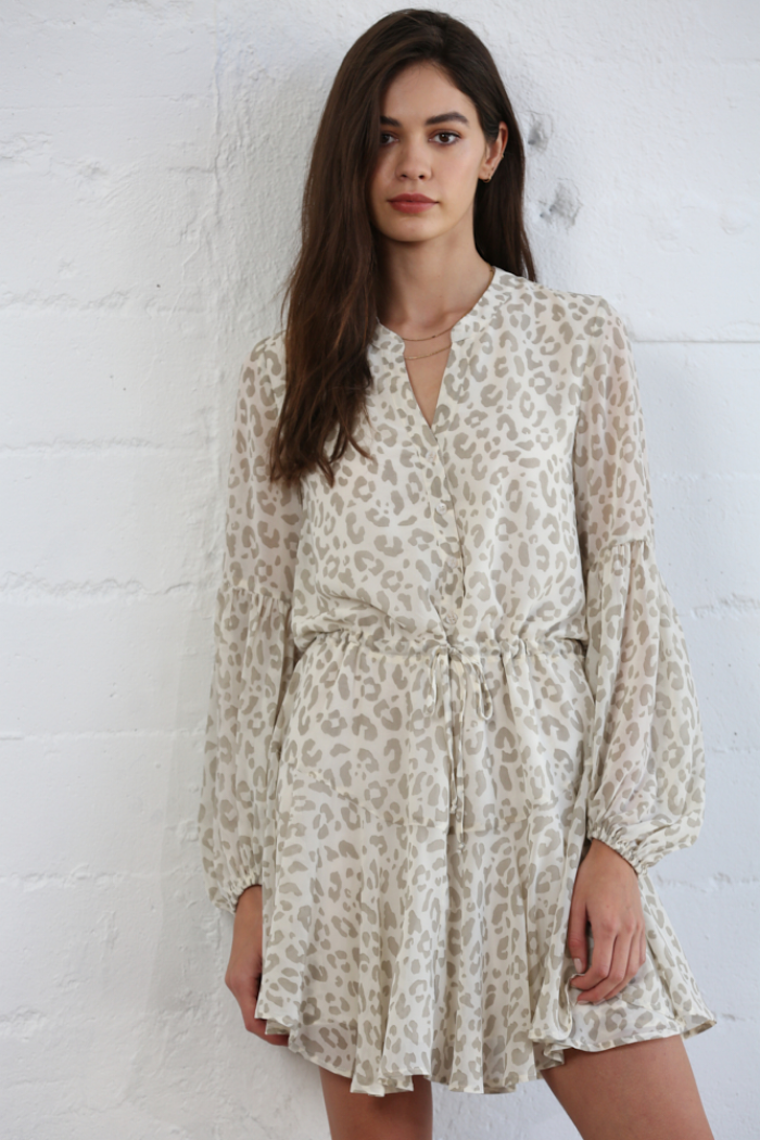 Flowy, draw string waist for a custom fit, this dress can be paired with cowboy boots or wedge heels. Either one works for an evening out or special occasion.