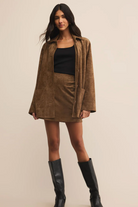 Buttery soft, perfectly tailored. This faux suede mini hugs just right with a clean zip-back design, made to pair with your coziest sweaters and favorite boots.