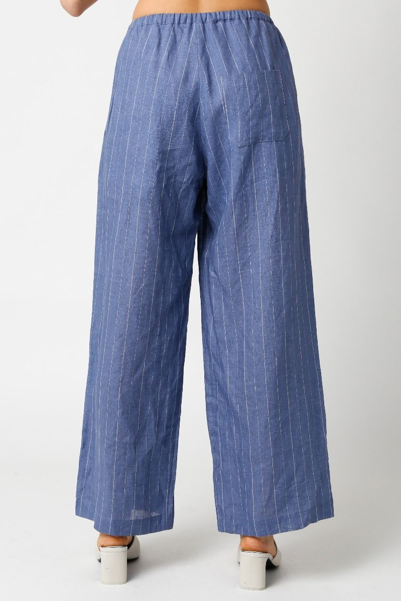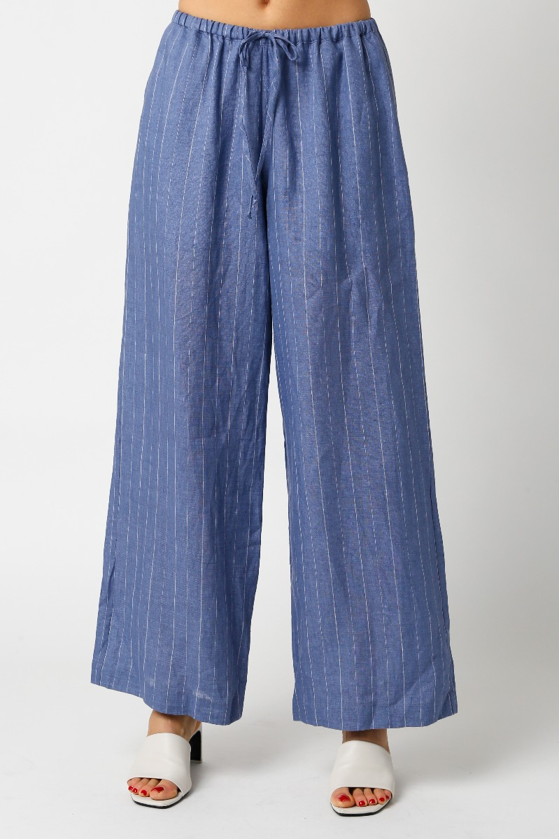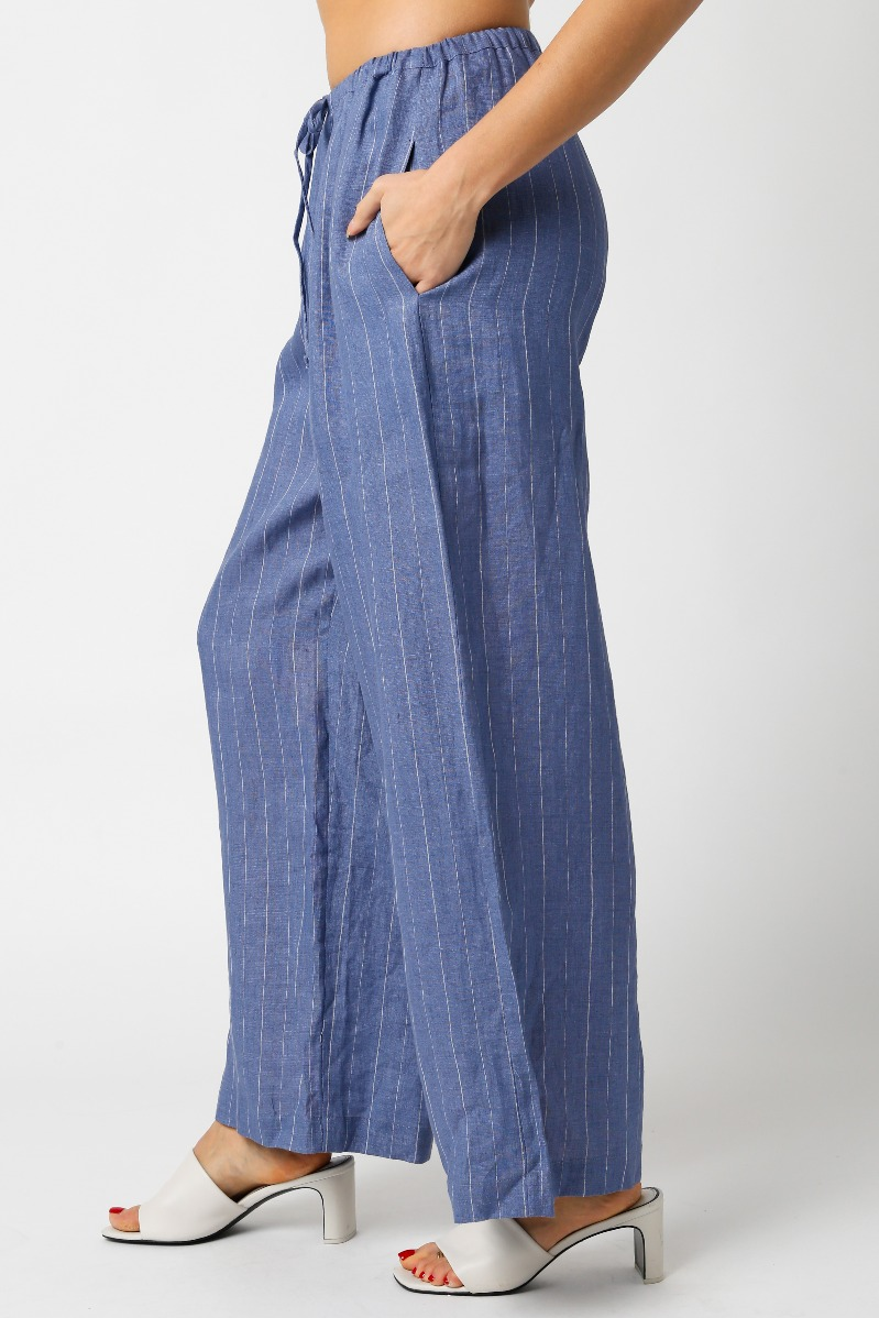 Our Cindy Linen Pant features a drawstring and pinstripe detail. Complete the look with matching top style # 2400-816LTJ