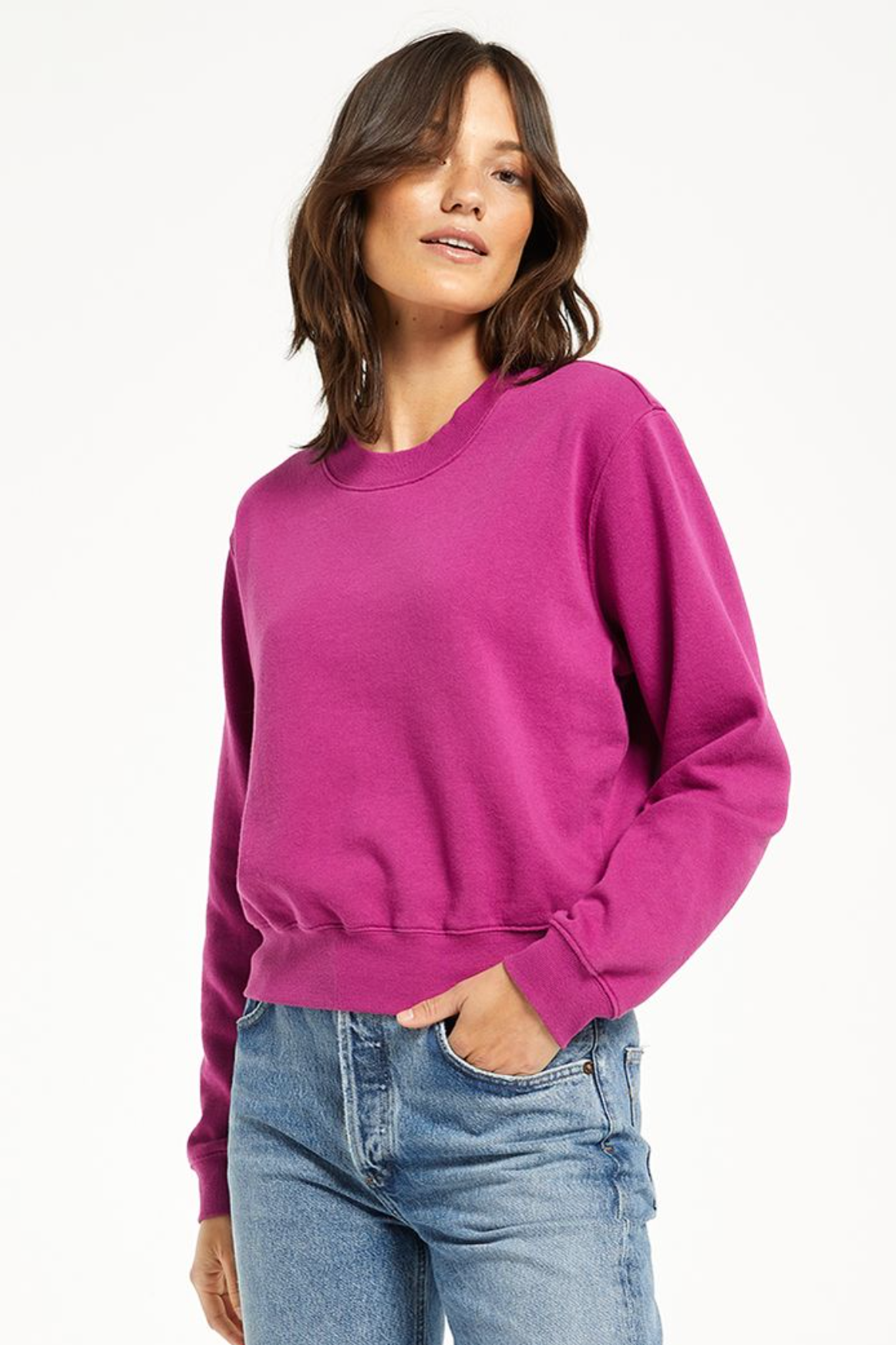 This classic crew sweatshirt looks great dresses casual with a pair of leggings or joggers. The jewel pink is also amazing.