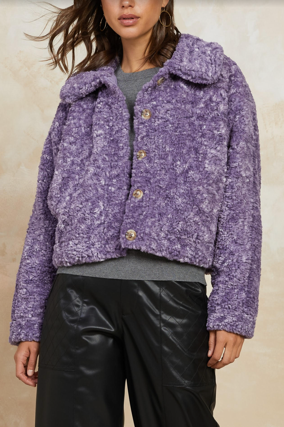 This cropped jacket is a great pop of color for fall. The length makes it great to go out it and paired with faux leather pants.