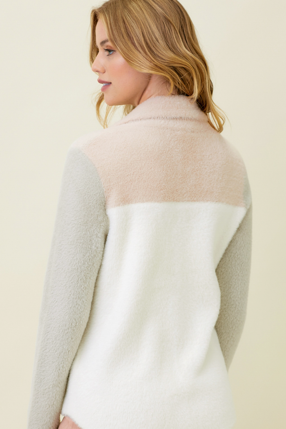 This sweater jacket will make a great layering piece for the upcoming season. Features of this sweater jacket include a button down closure, pockets, and faux fur to keep you warm!