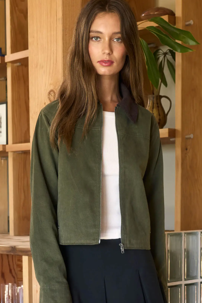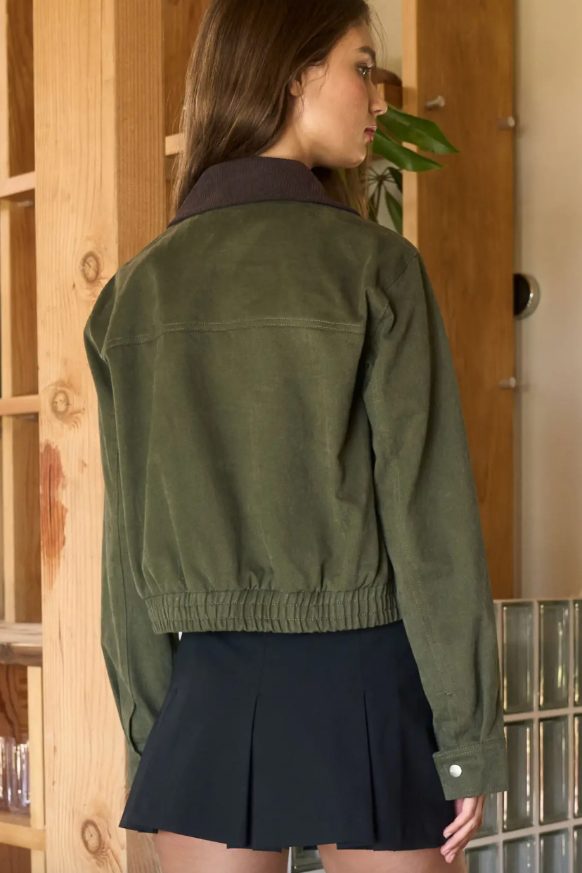 Contrast Corduroy Collar Zip-Up Jacket