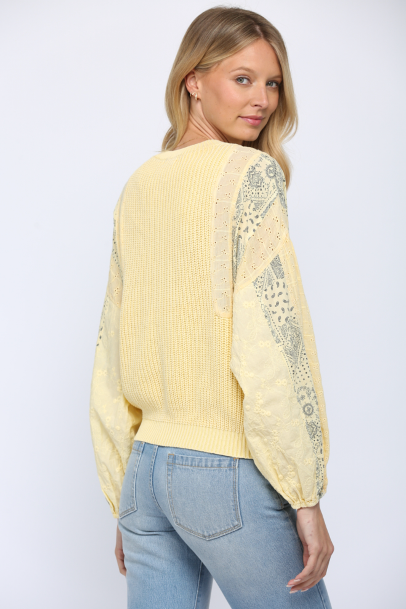 This mixed contrast sweater is great for summer. It looks great with denim shorts or jeans.