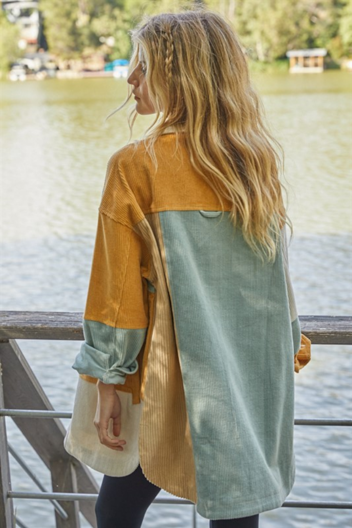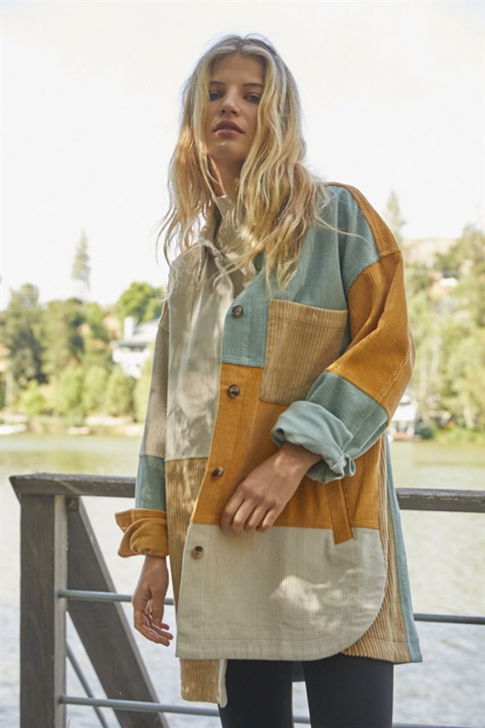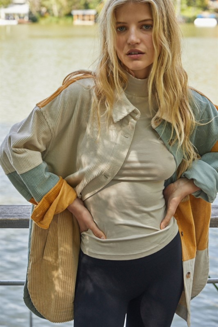 Best of both worlds with this corduroy shacket. Wear as a top or for outwear on chillier days.