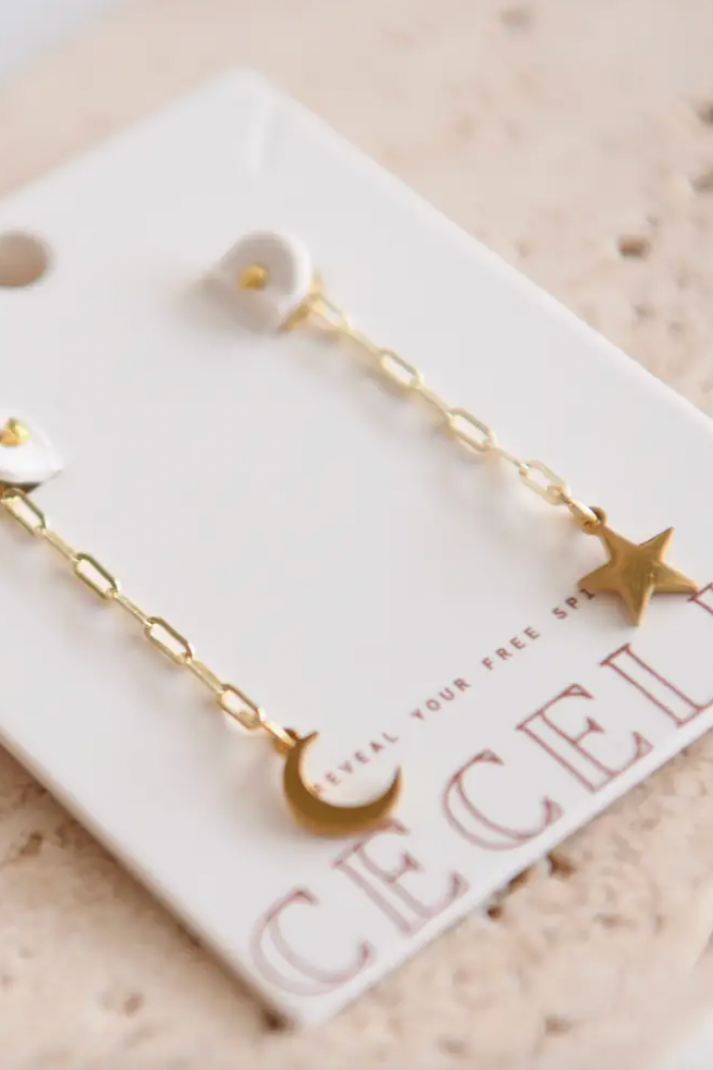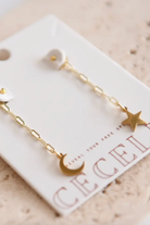 Cosmic Glow Moon & Star Pendant Front and Back Drop Earring