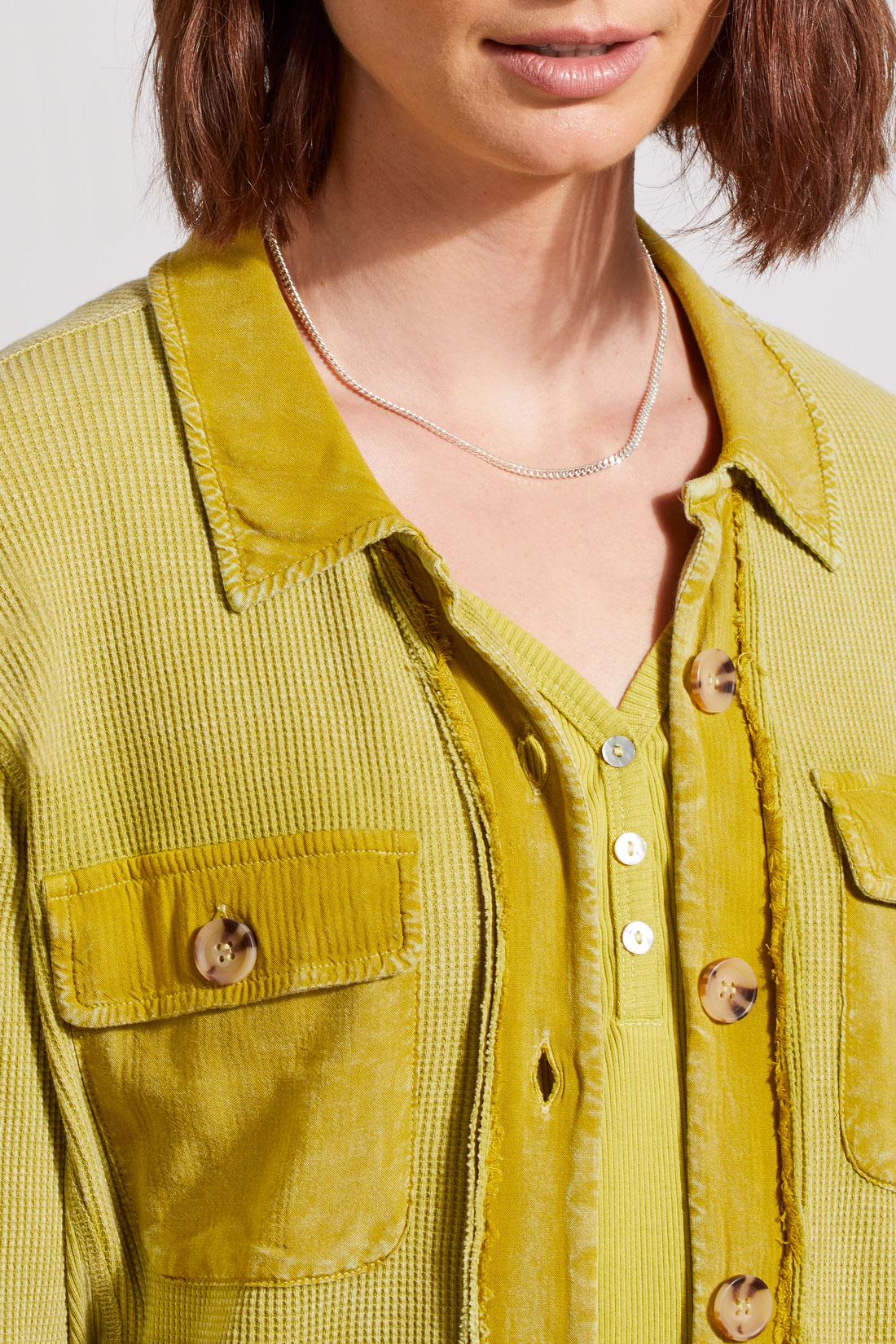 Throw on for cooler nights or wear as part of your look for the day. Soft color and look.