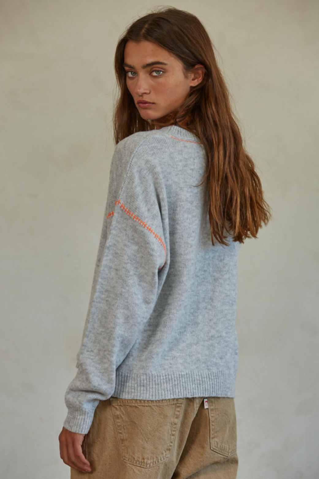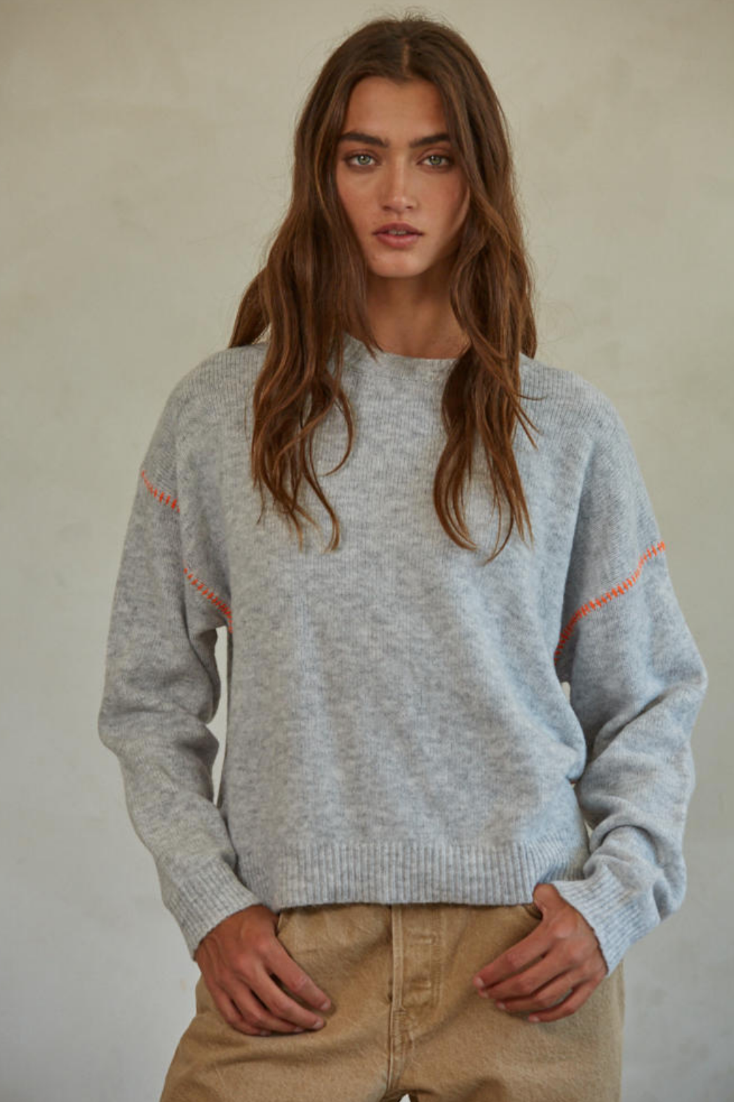 Knit Recycled Polyester Acrylic Nylon Sweater Stitch Detailed Crew Neck Long Sleeve Pullover Top. This sweater pullover has a relaxed fit allowing for a comfortable outfit.