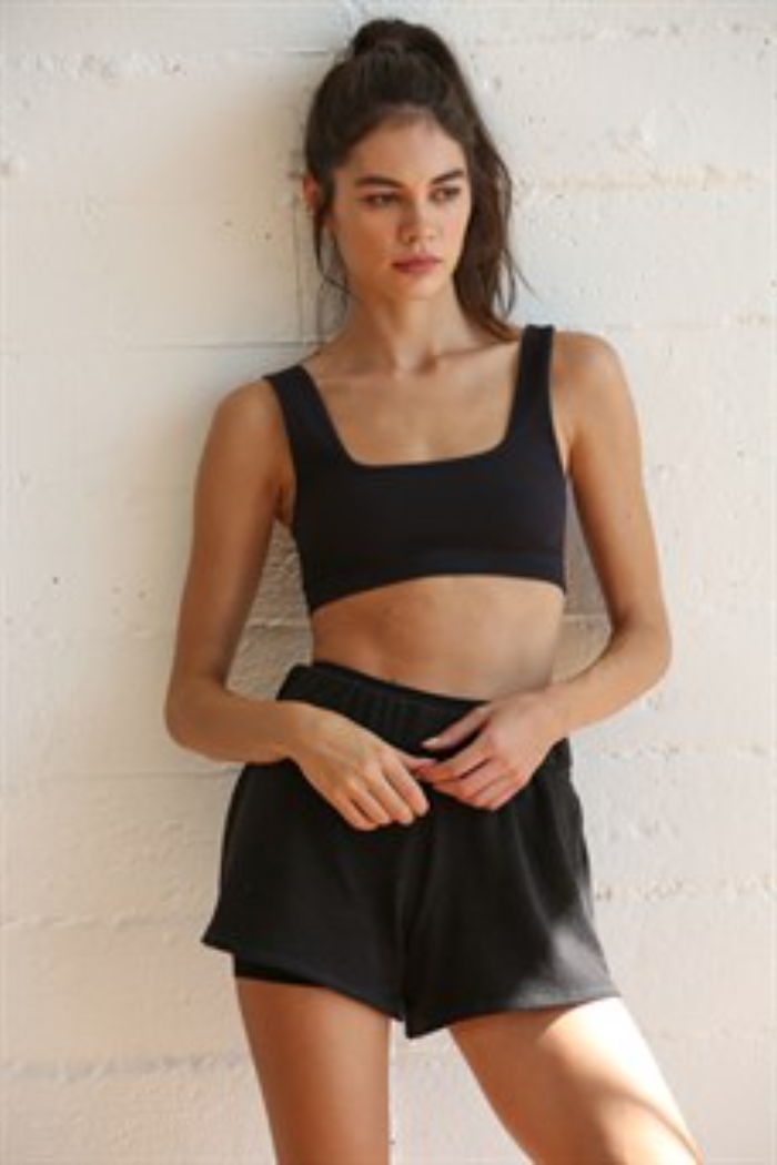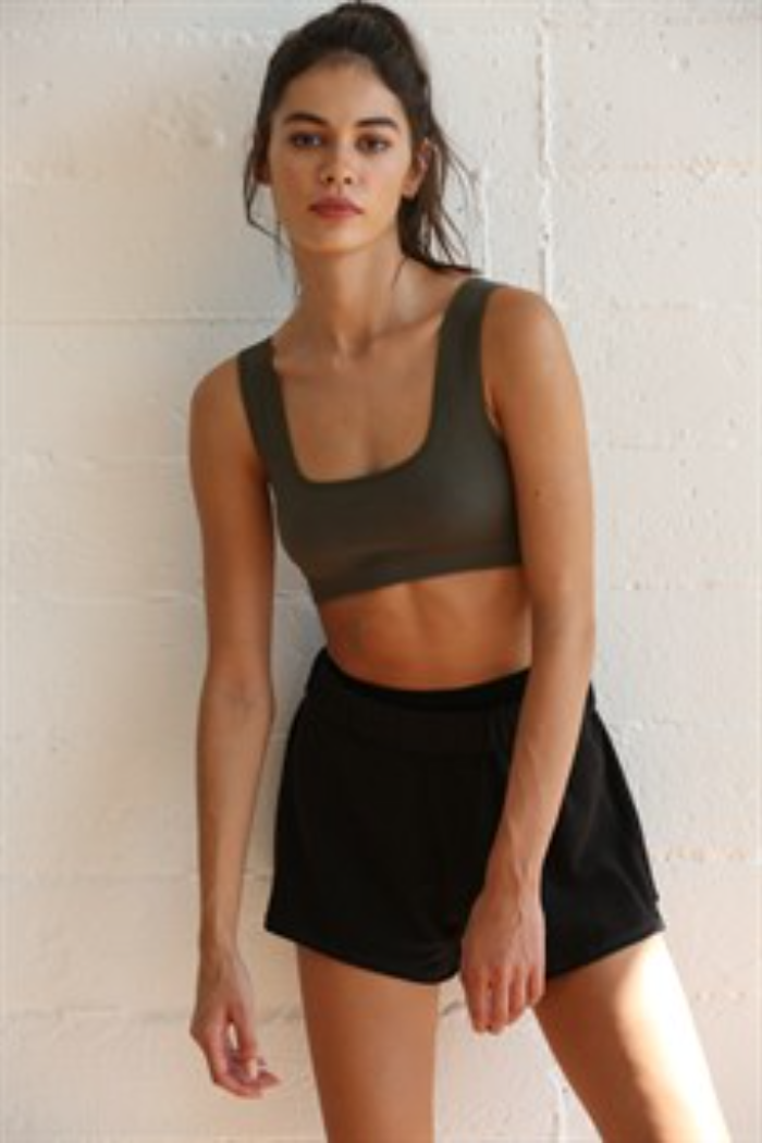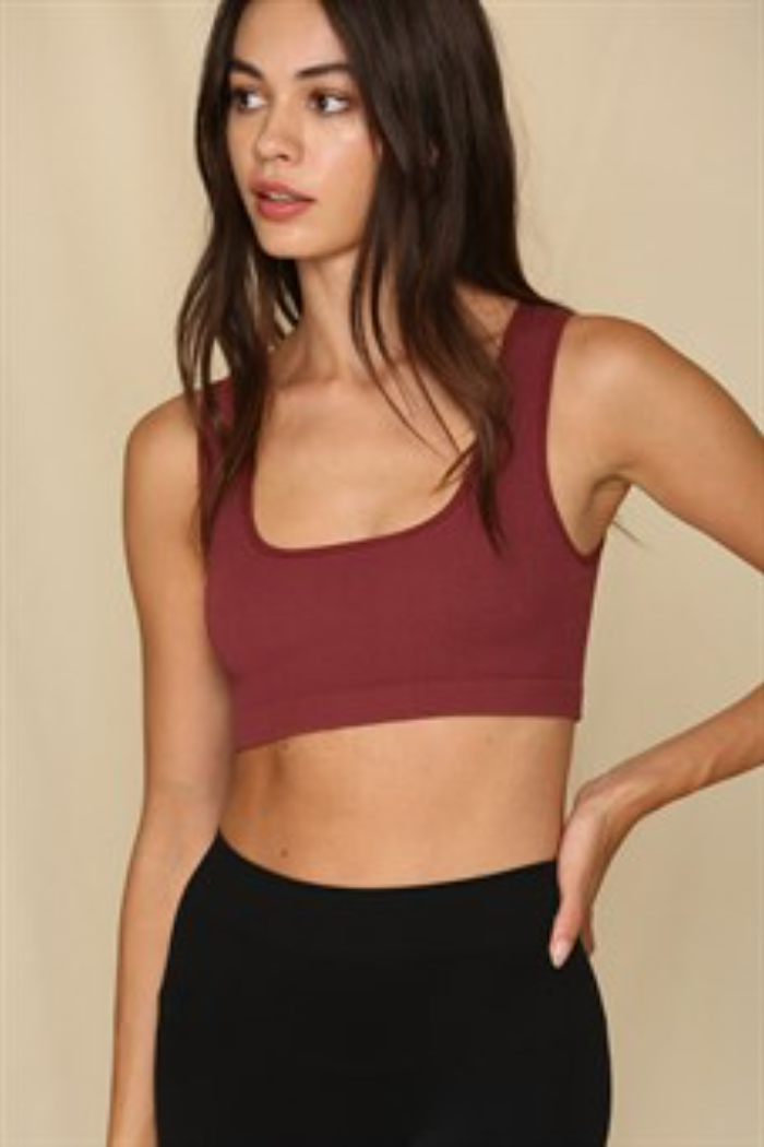 Seamless Square Neck Wide Shoulder Strap Crop Tank Bra Top