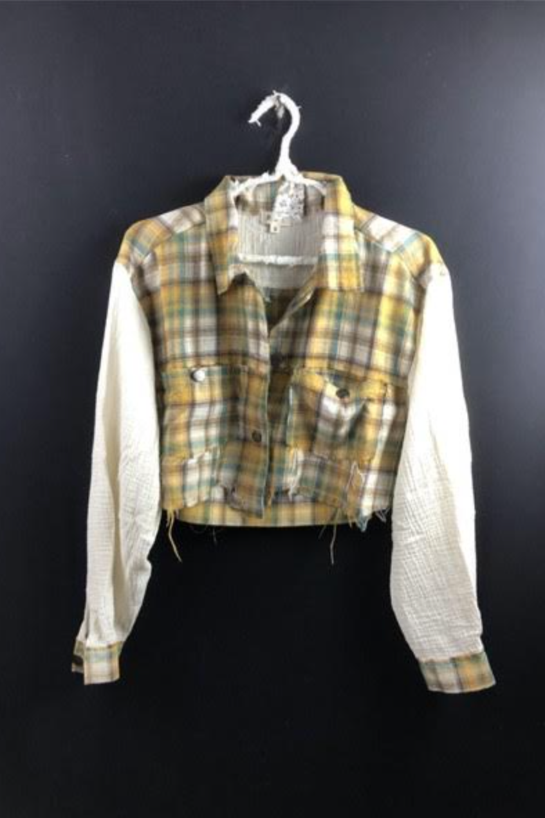 Cropped Mixed Material Flannel Top