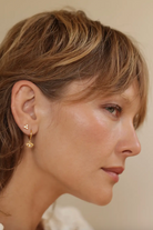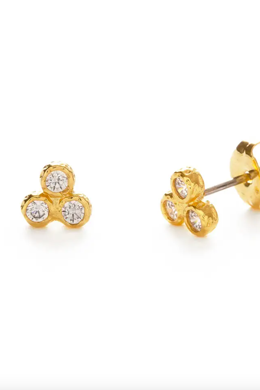 Measuring 5mm at the base, with 3 Czech crystals in hand full wrap setting for a handcrafted look. Surgical steel post and a heavy Measuring 5mm at the base, with 3 Czech crystals in hand full wrap setting for a handcrafted look. Surgical steel post and a heavy 14k gold over brass. Designed and assembled in our Sonoma California studio.