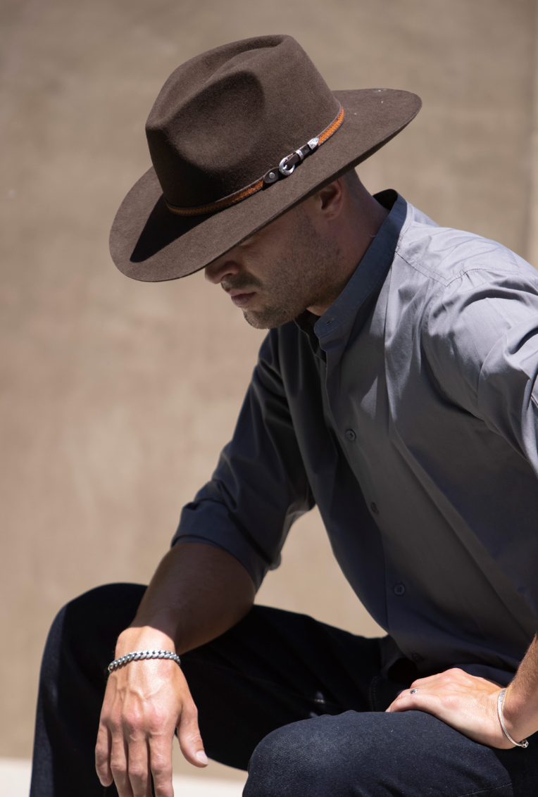 Unisex Style, 100% Wool Felt. Embossed Leather Band. Brim: 3.5″