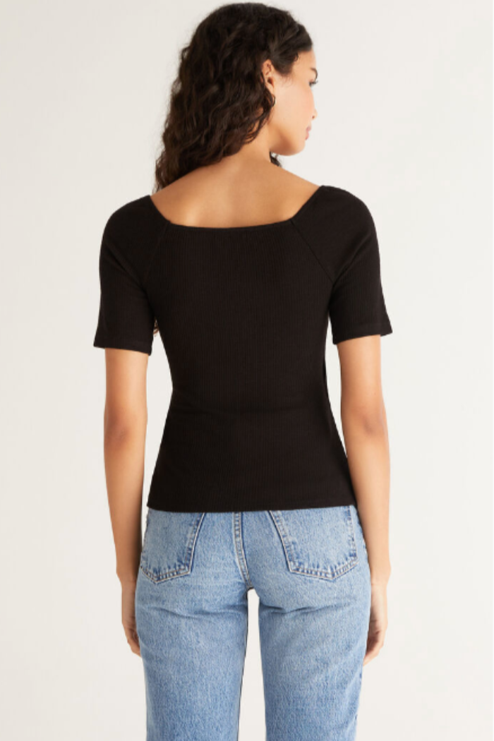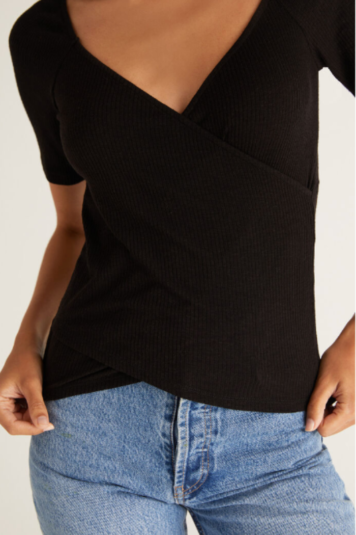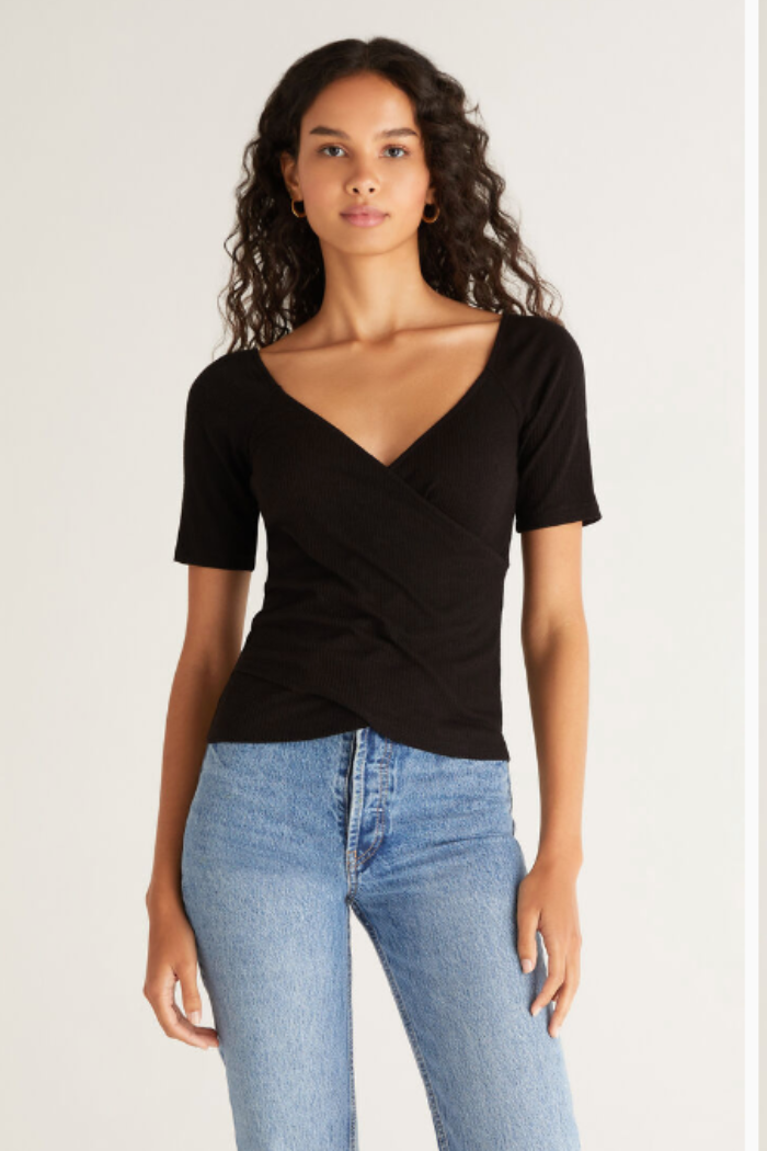 he Date Night Rib Short Sleeve is chic and full of fun details like the ballet-inspired crossover detail and faux wrap design. This fitted top is made using our Rayon Spandex fabric and has a flattering neckline that is perfect for showing off accessories.