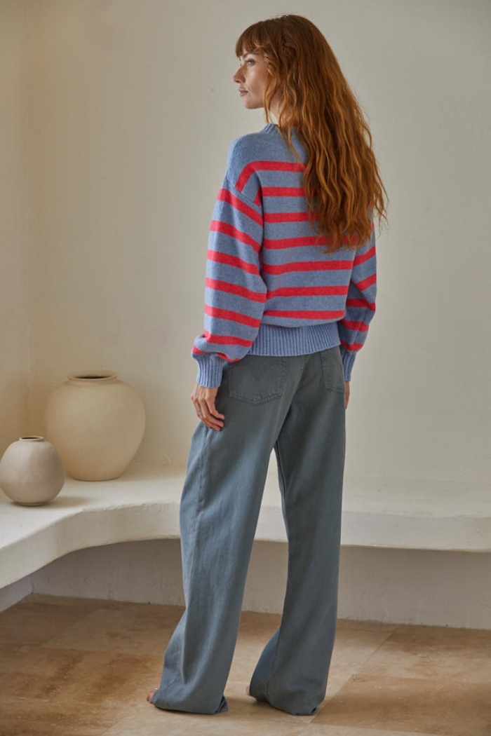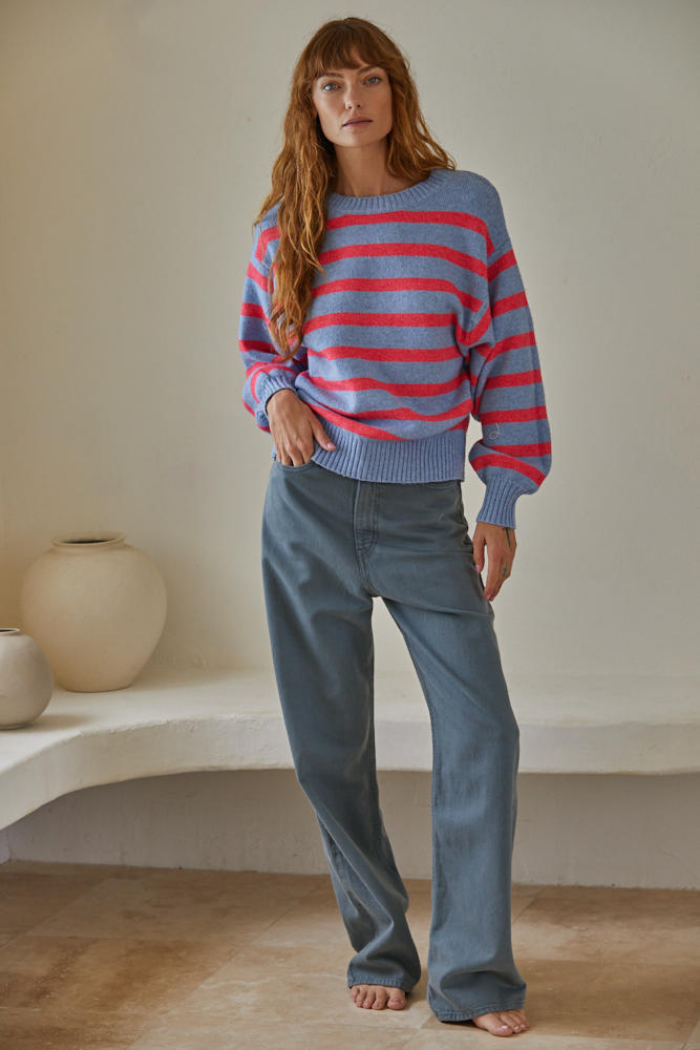 Knit Crew Neck Long Sleeve Drop Shoulder Stripe Oversized Sweater Top