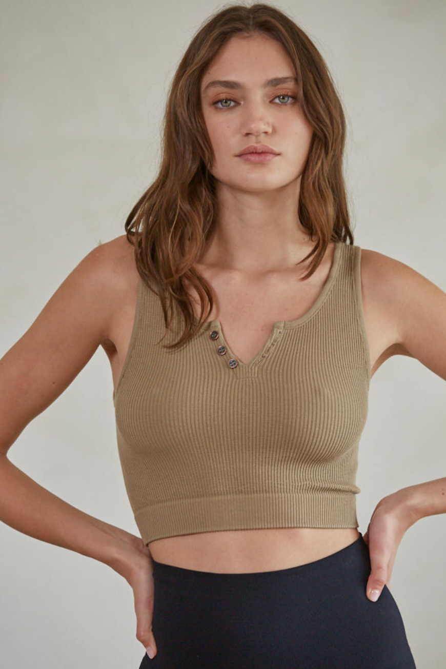 This high quality seamless brami can be layered or worn alone. It has a square neck and a button detail.