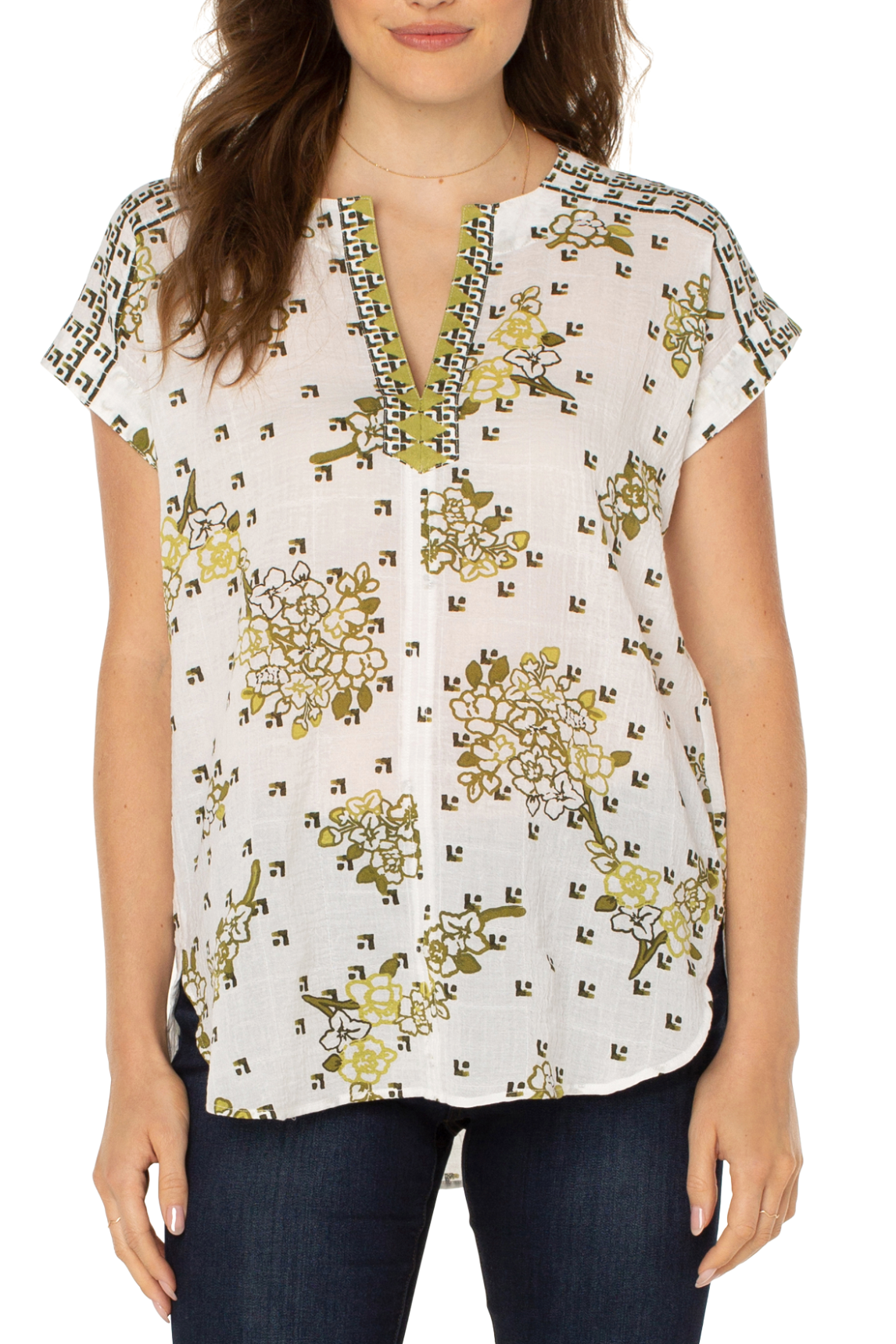 This blouse looks great with leggings or jeans. Easy to pack and great for vacation.
