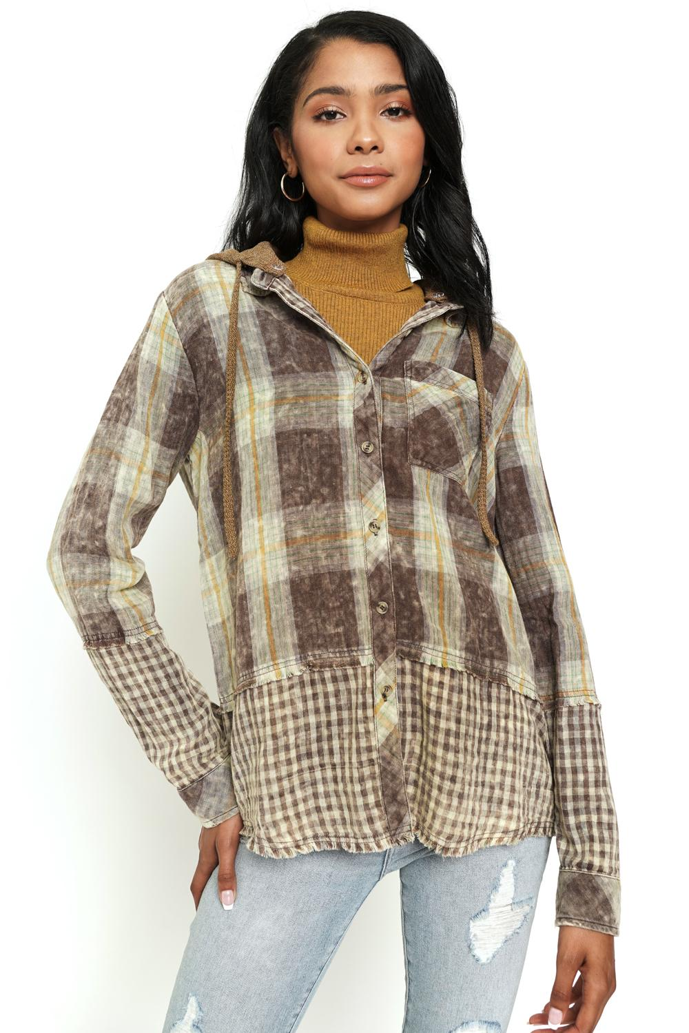 Double Plaid Shirt Jacket With Hood