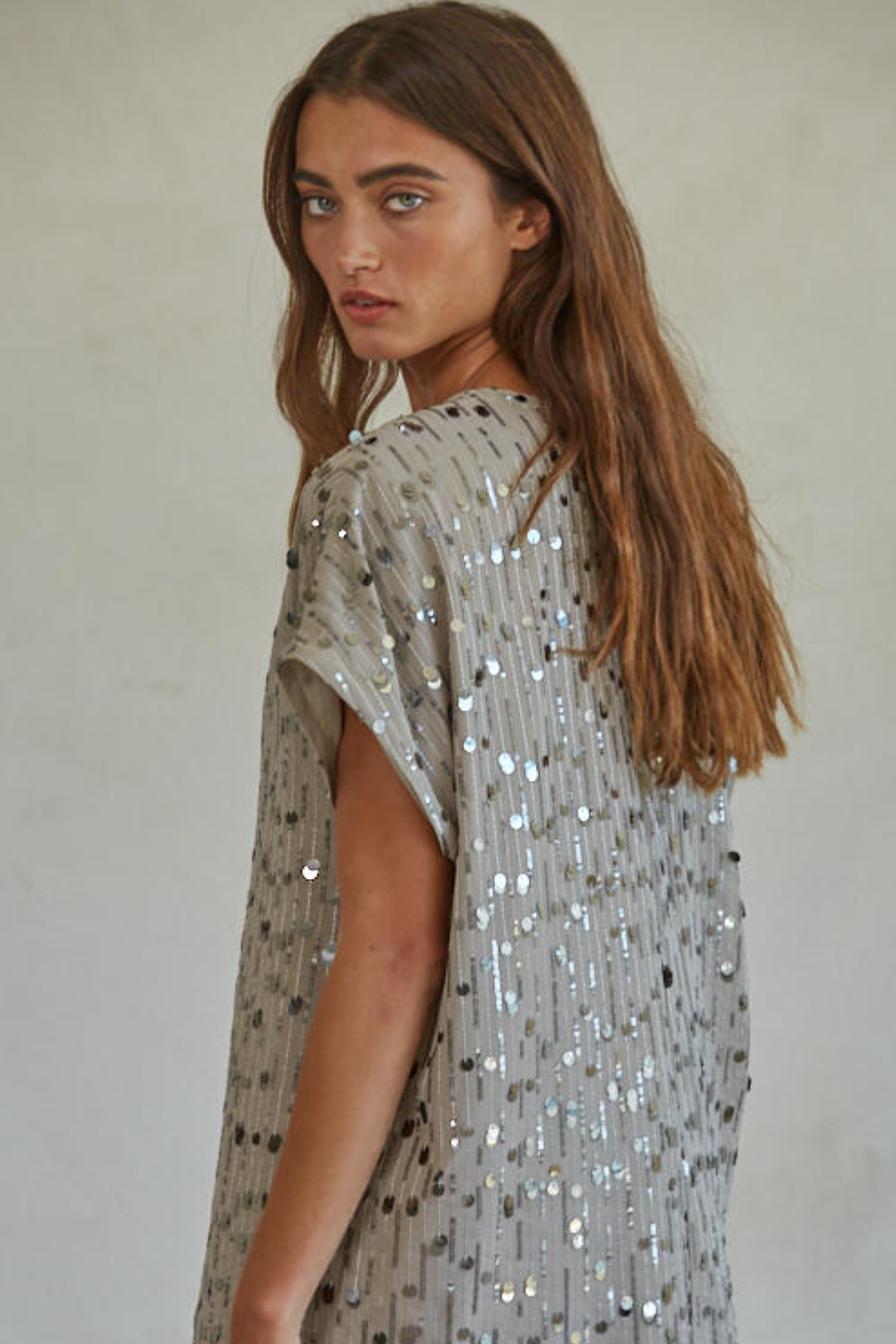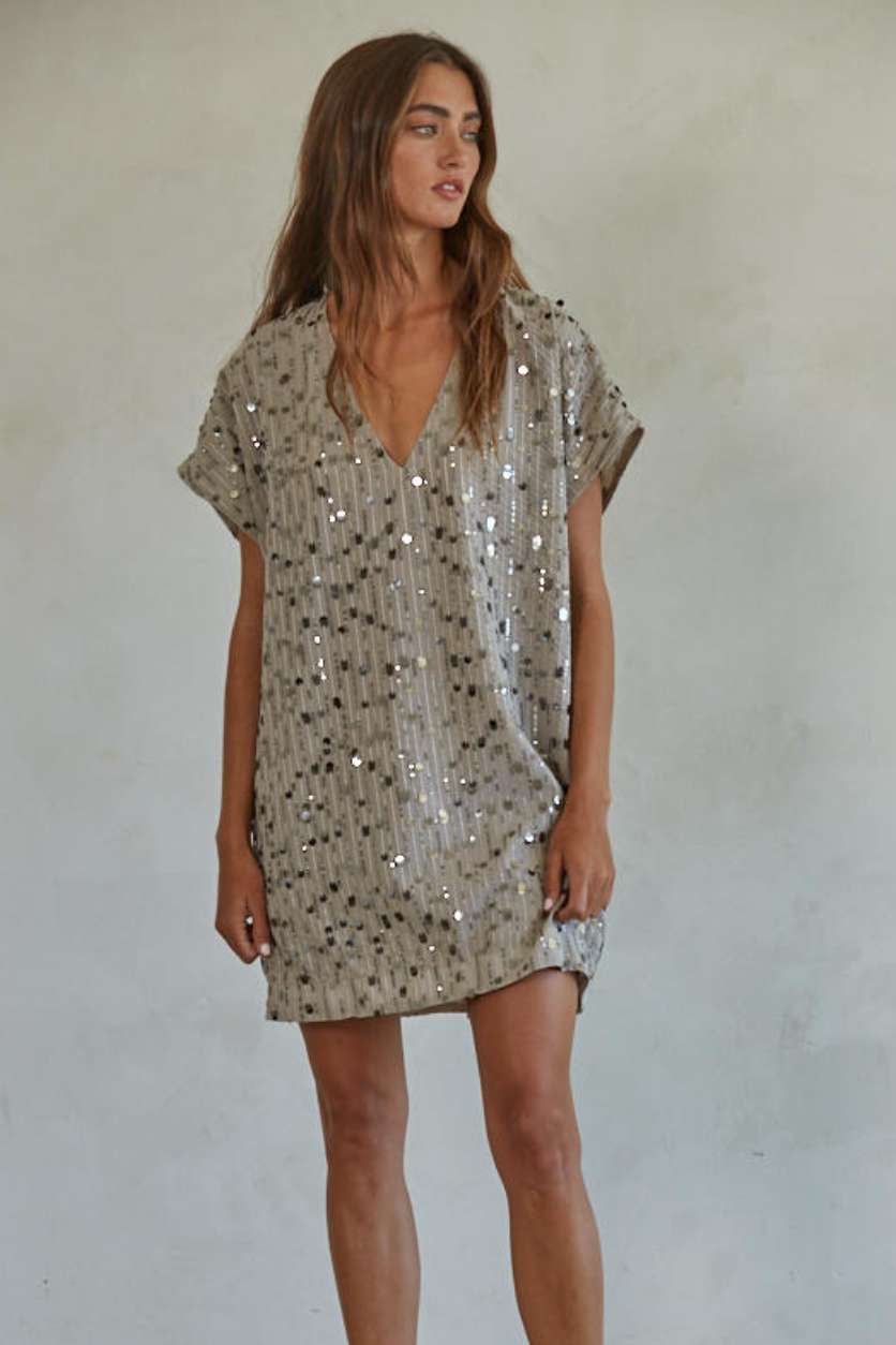 A flashy dress to celebrate a special occasion! The sequin detailing of this dress makes it fun to wear, and will look great for a night out.