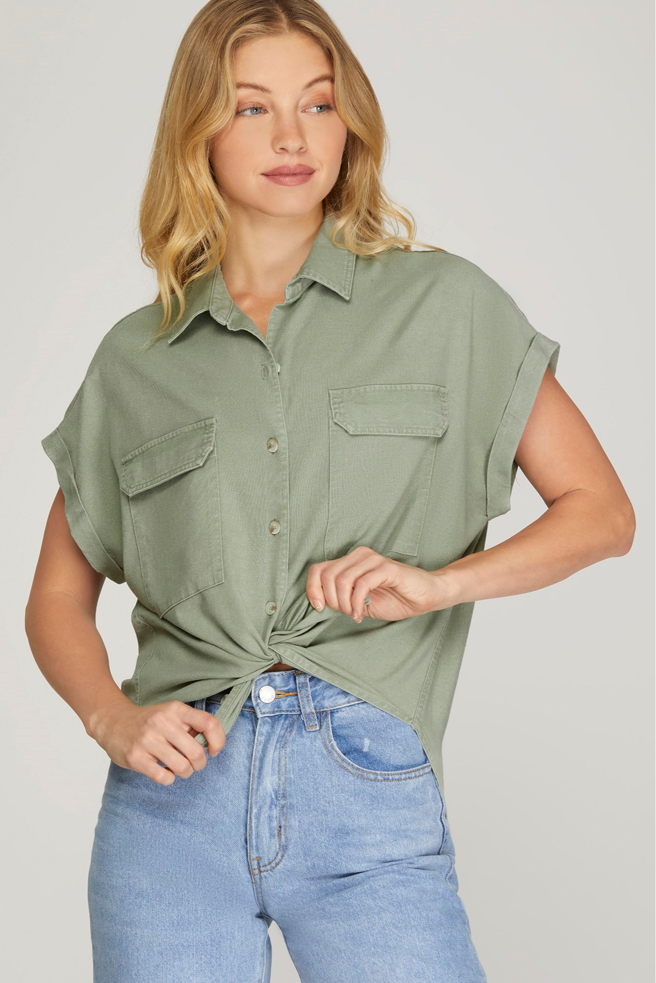 Drop Shoulder Button Up