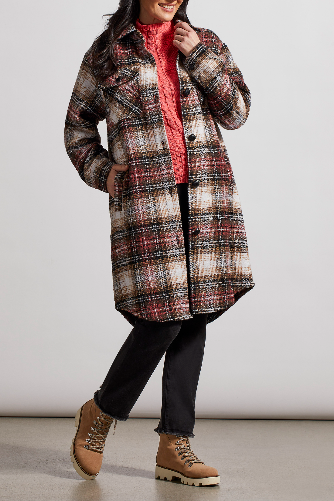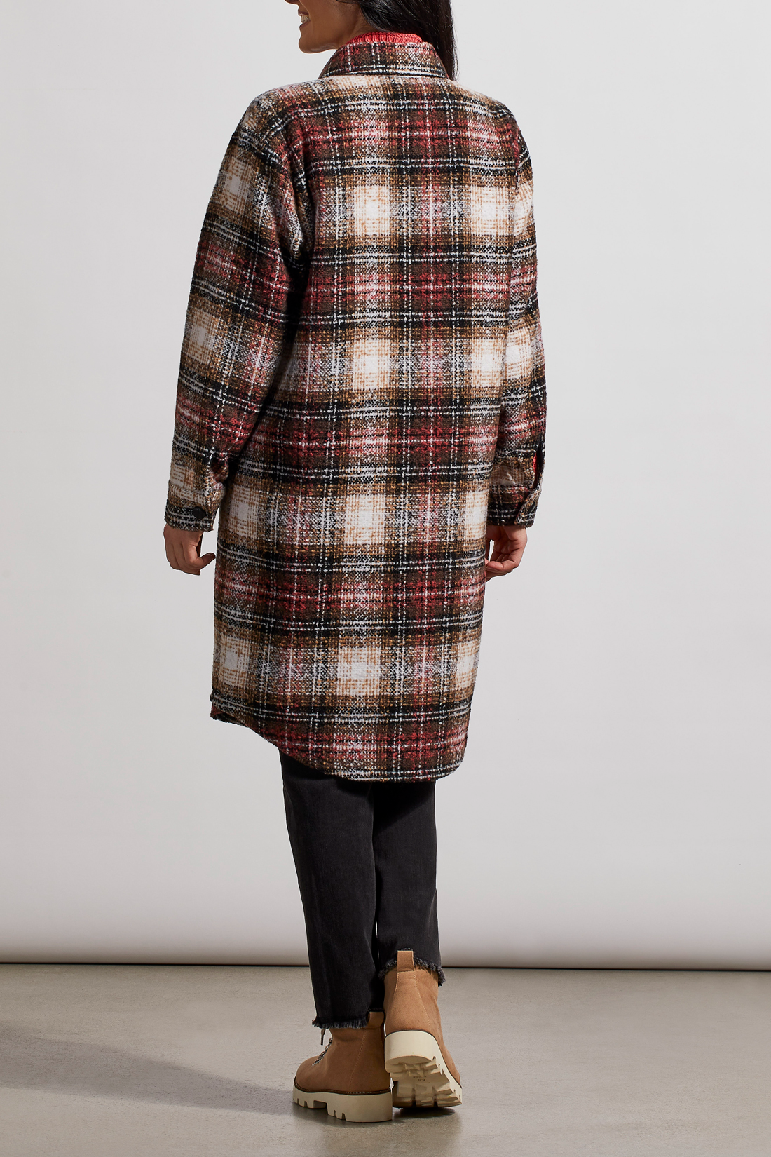 This long shacket will keep you warmer during the cold weather. Will look great paired with jeans and a sweater underneath.