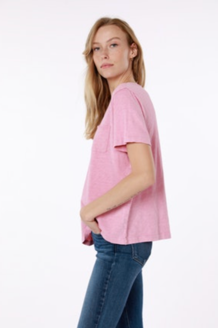 This drop shoulder t-shirt is easy and comfortable. It is a great pop of color and looks great with jeans, shorts, and a great travel top.