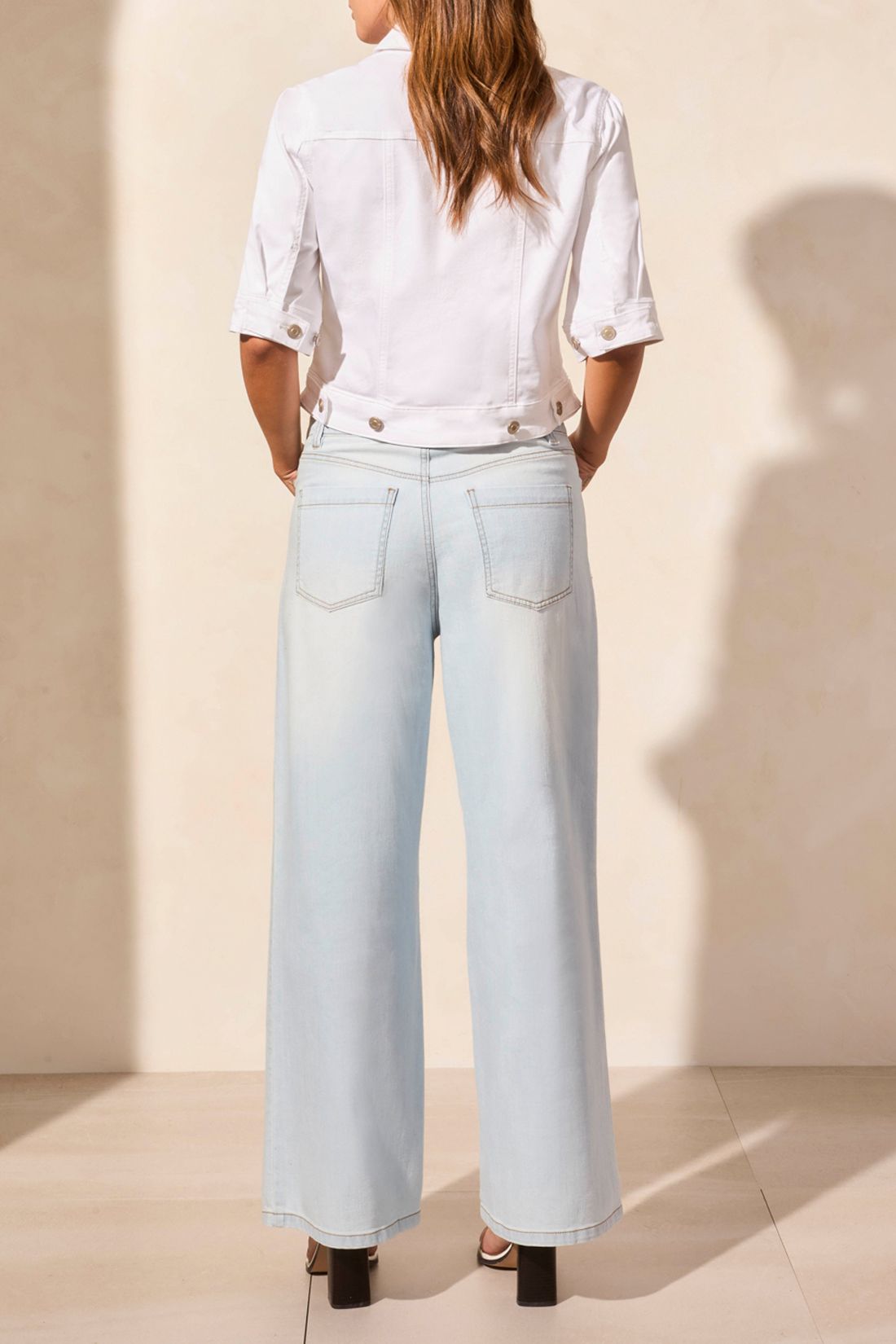 Elbow sleeve meets denim. Casual look to set off your outfit. Stay cool and warm in this jacket.