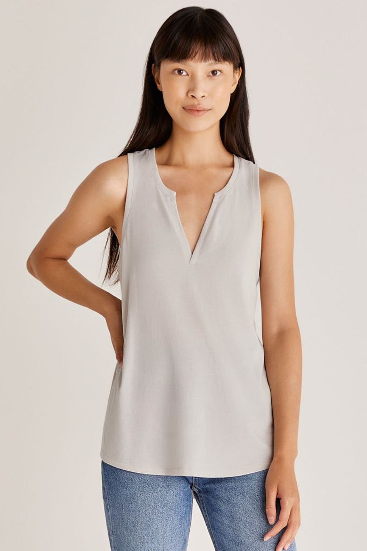 This tank is speaking our language! Our Ella Easy Tank is the ultimate basic in comfort and style. The relaxed fit, racerback, and notch detail at the neck make this the perfect tank to throw on as a base layer!