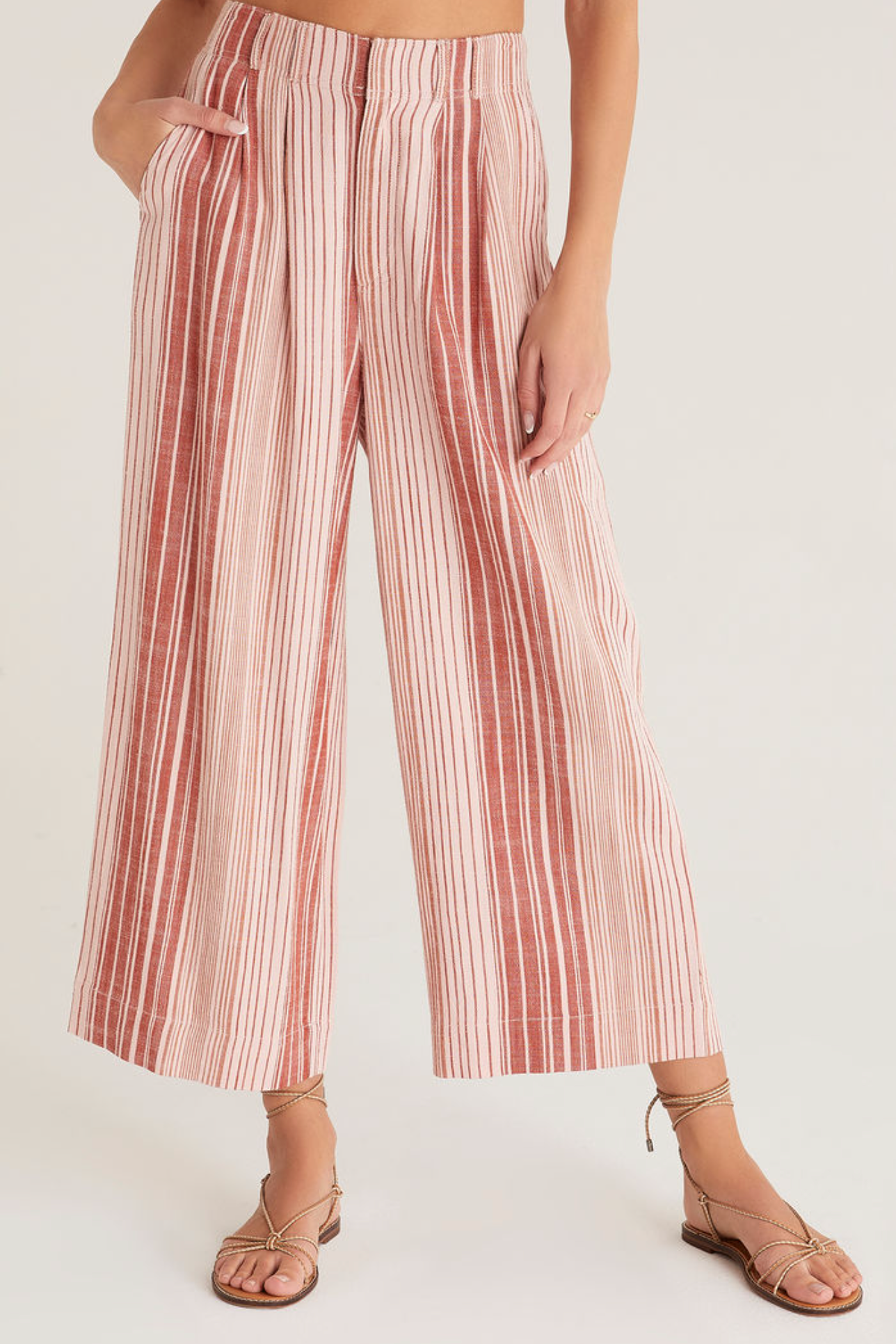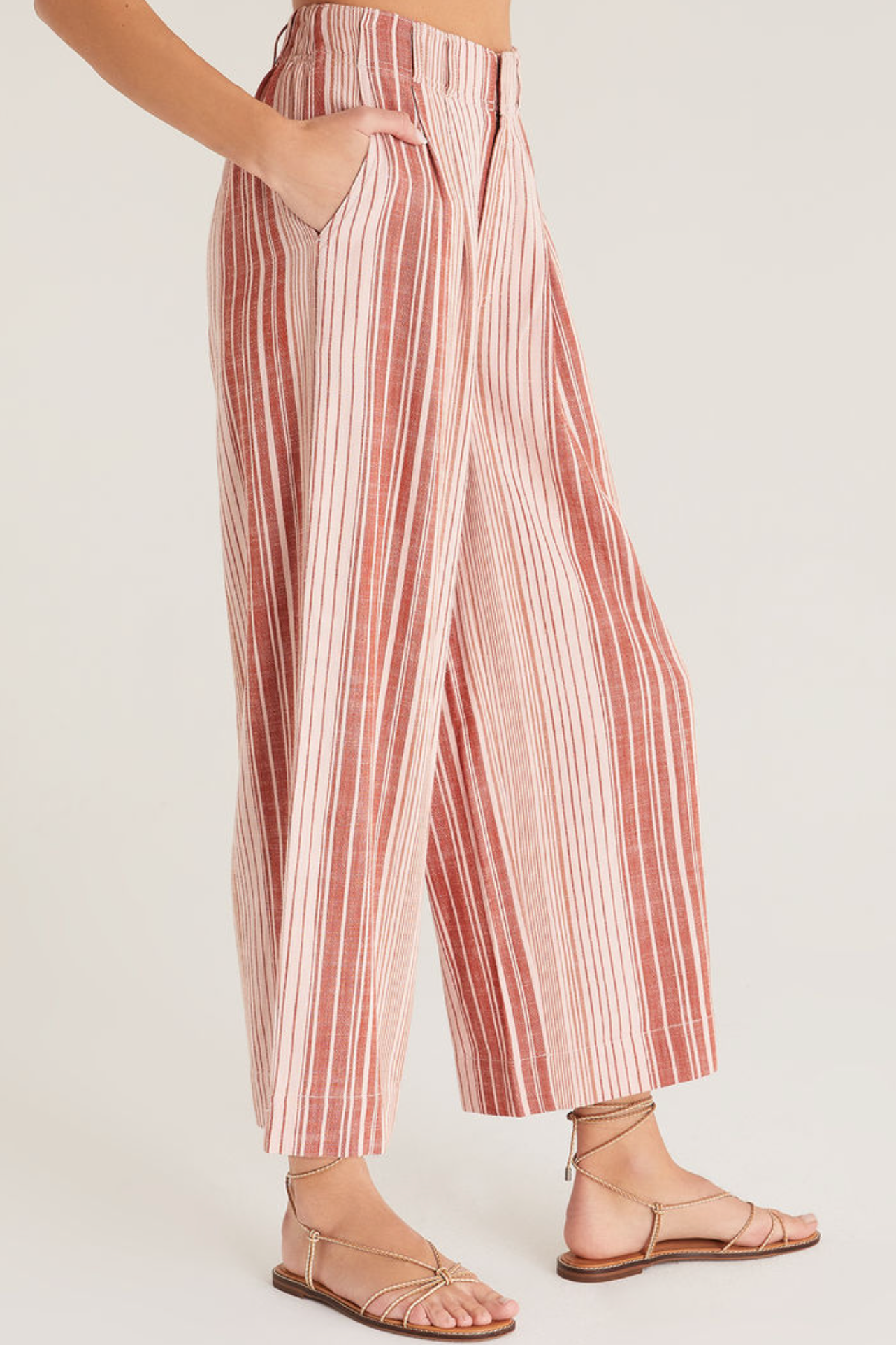 Staying in style is easy when she has the Farah Stripe Pant to do the work for you! These rayon linen pants have a trendy high-rise and exaggerated wide-leg.