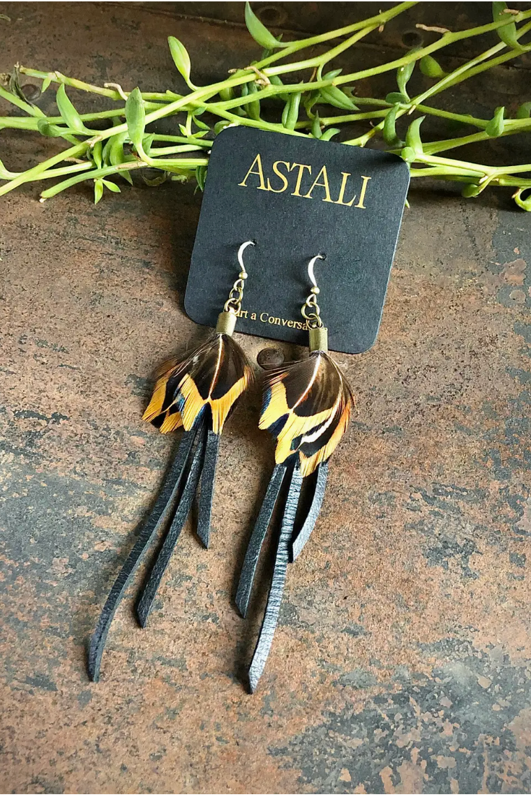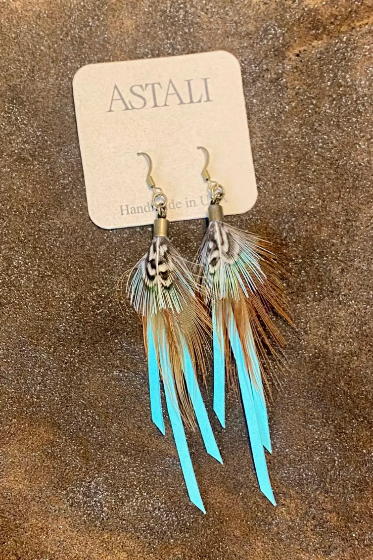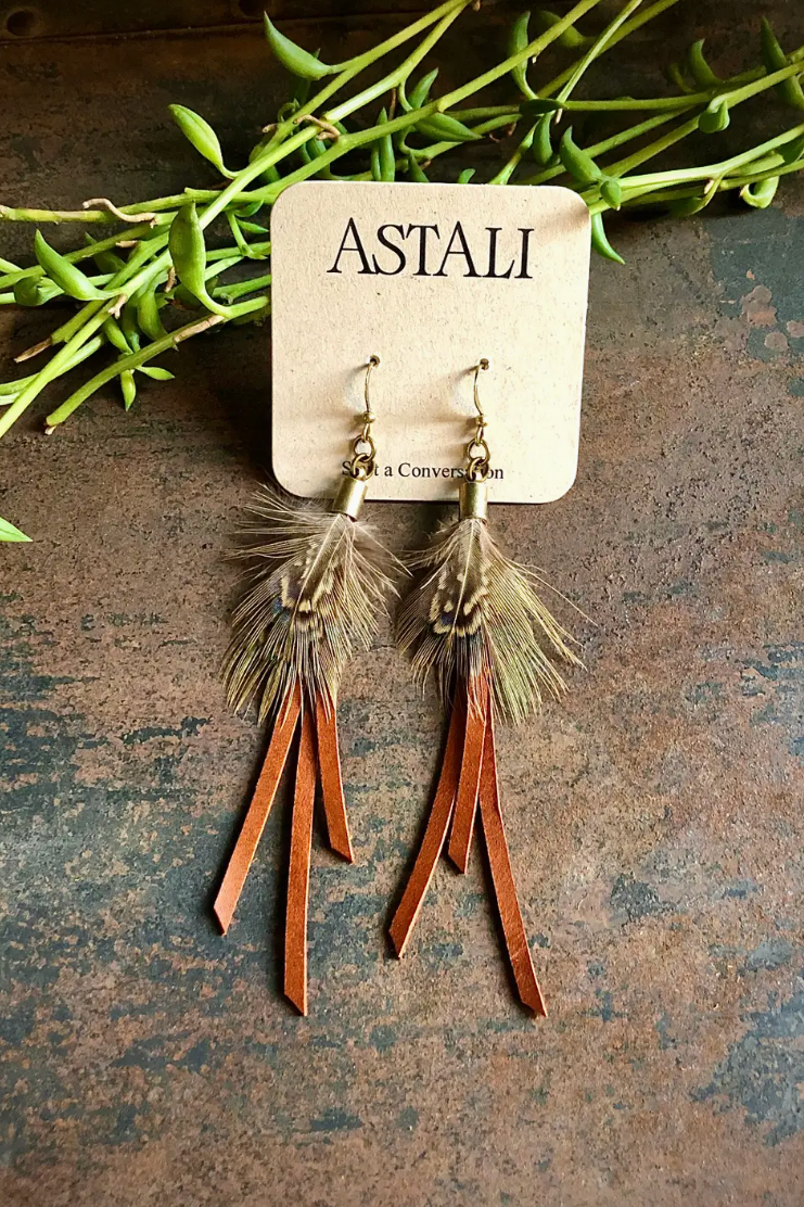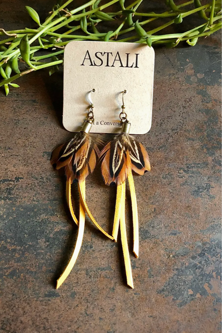 These tassel earrings are made from soft deerskin leather and beautiful pheasant feathers.