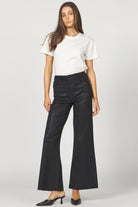 High rise, clean hem. These foxy fun pants are great for a night out.. Pair with a graphic t shirt or a fitted cropped sweater. Wedge heels or low boots.