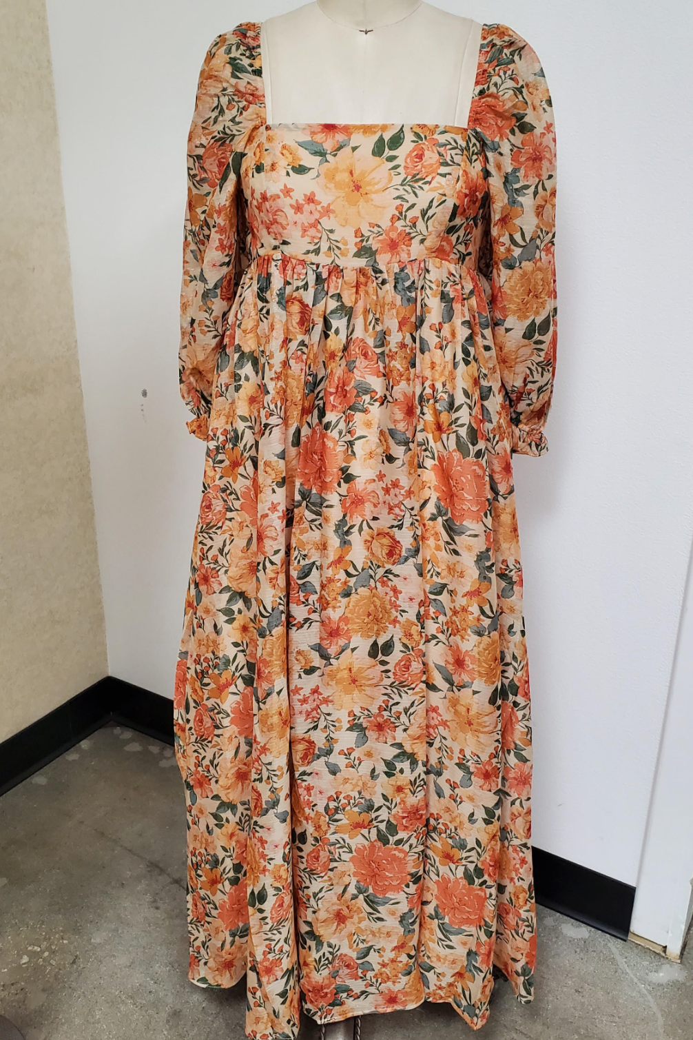 This maxi style baby doll dress is easy to pair with some brown fall boots and an easy denim jacket.