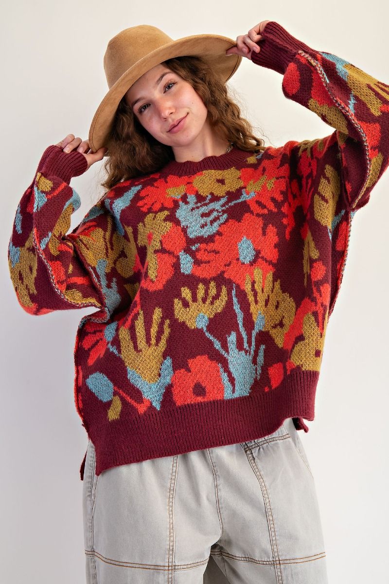 Floral Patterned Sweater Pullover