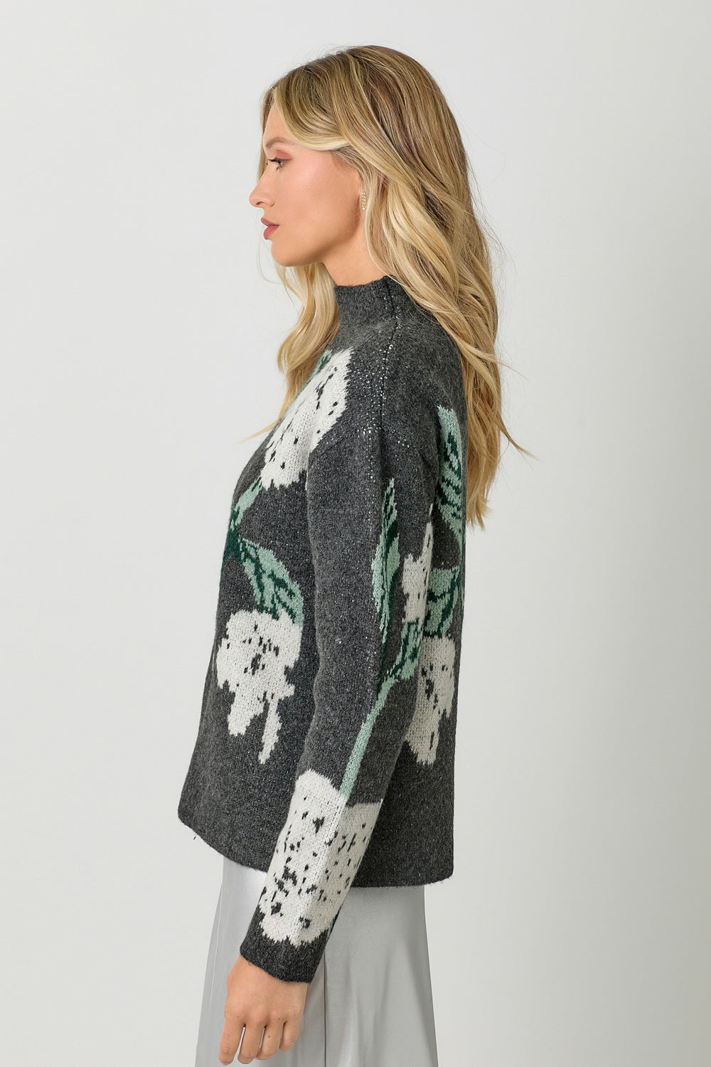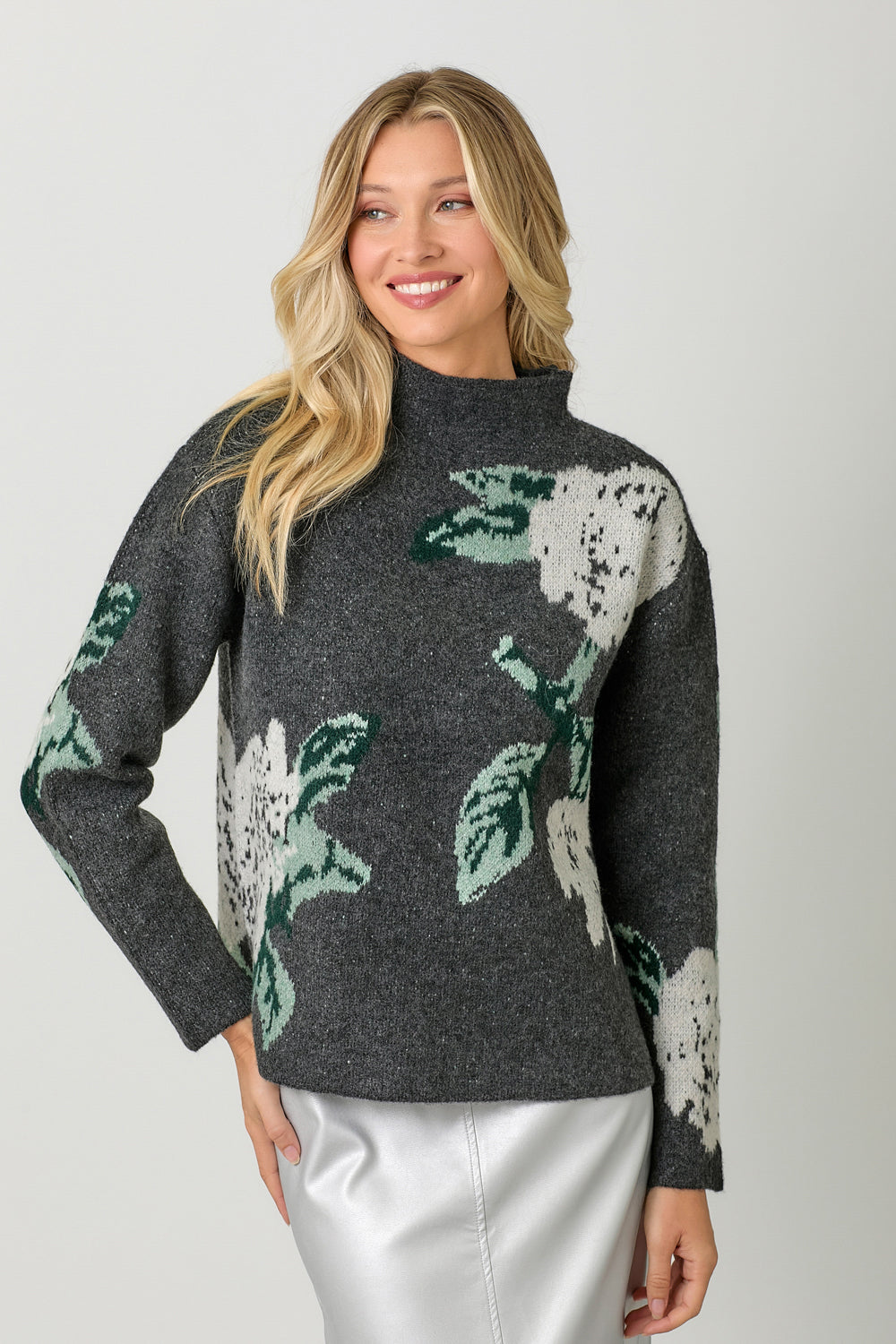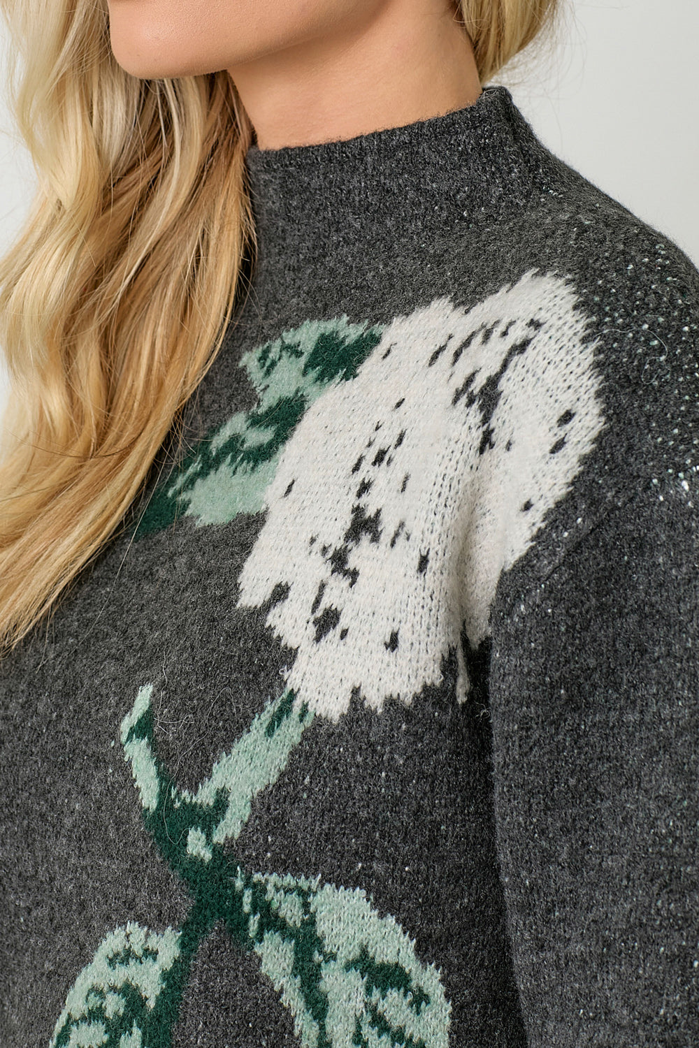 Floral Print Funnel Neck Sweater
