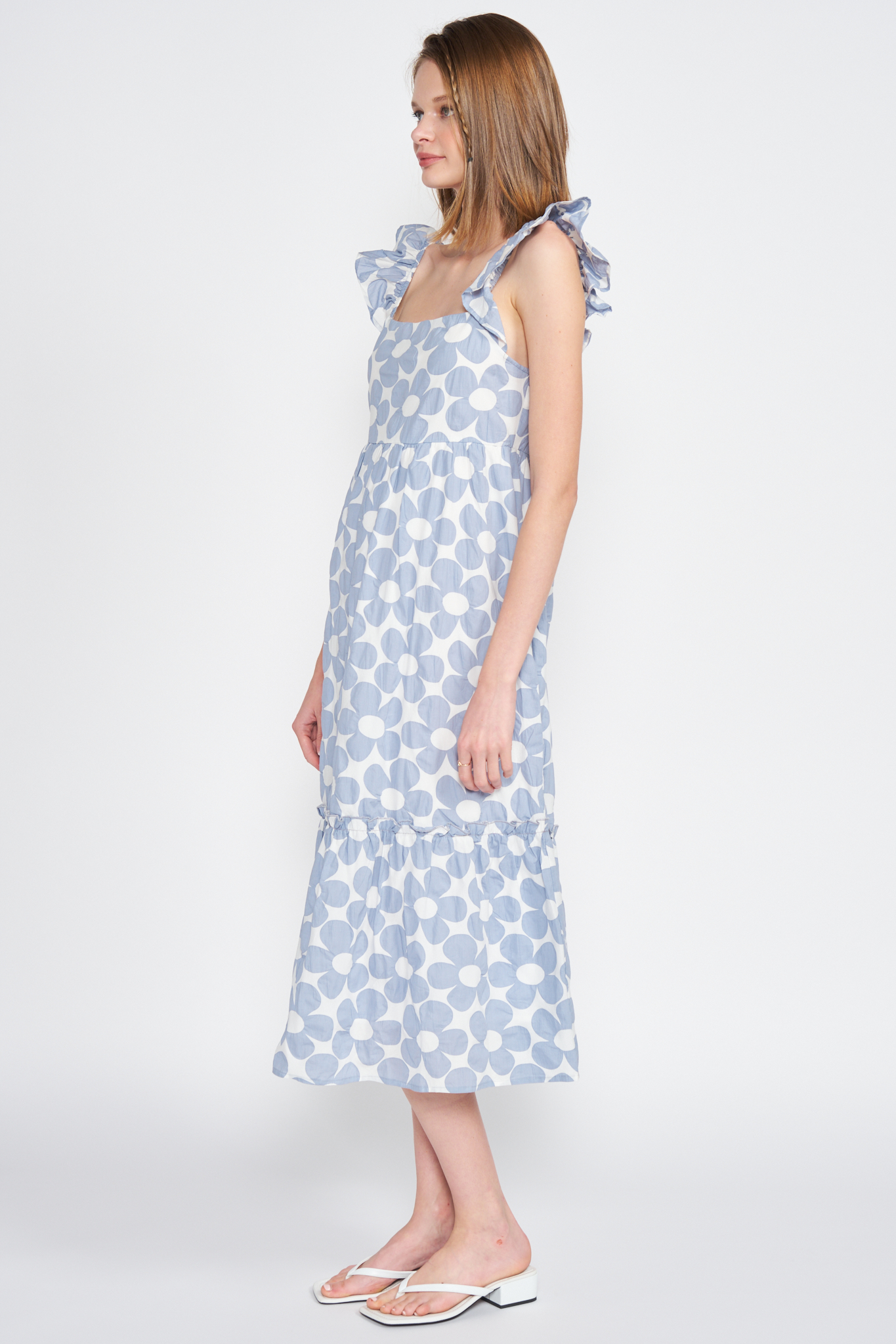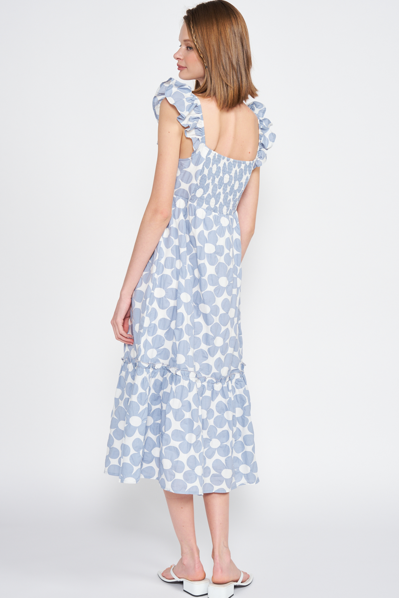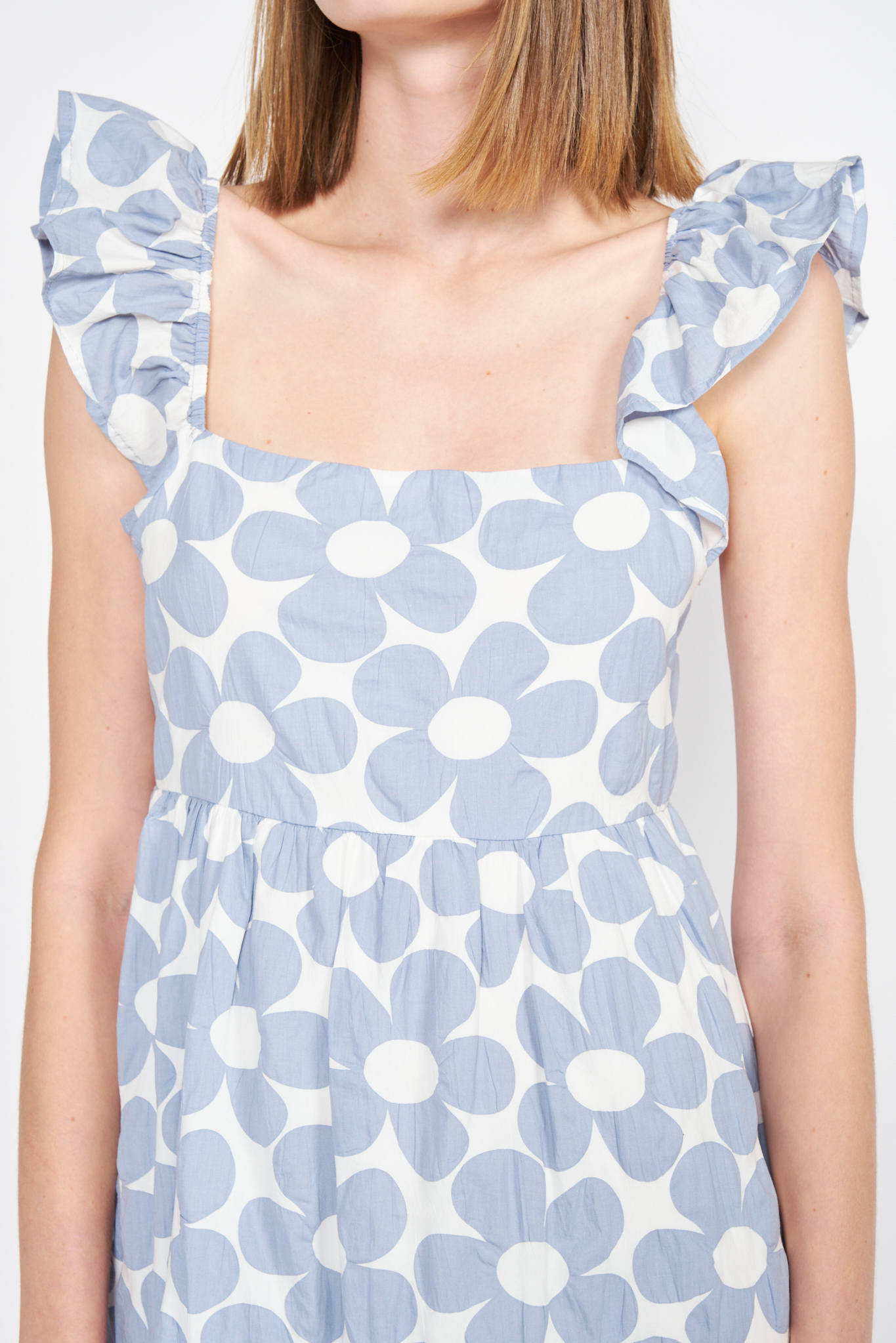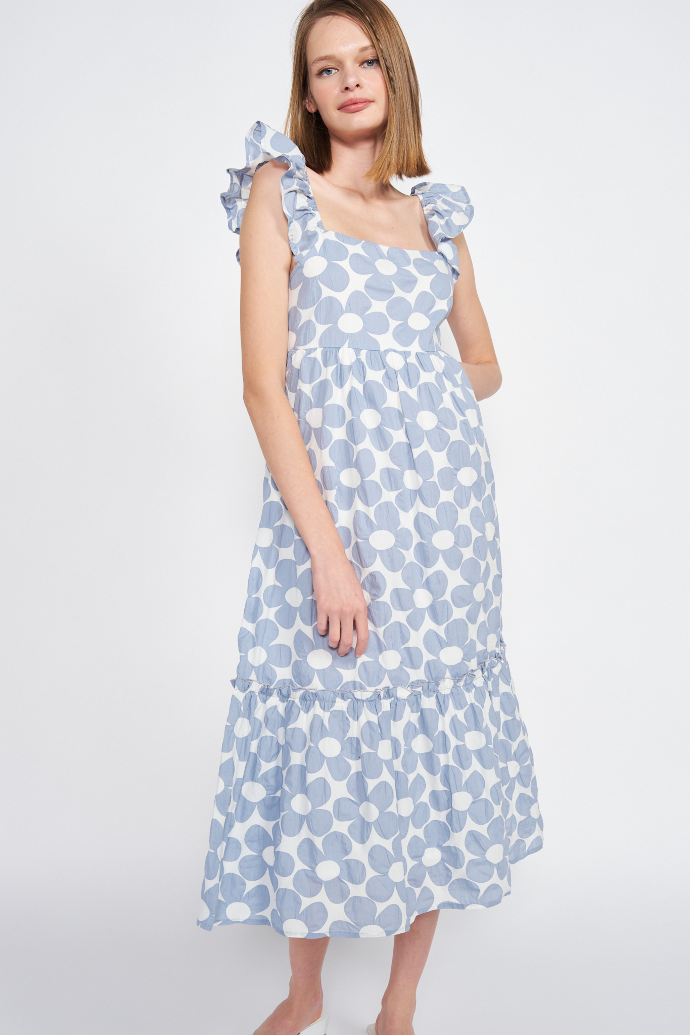 This is one of the must have sundresses for the season. Cool cotton, flowy with the sweet floral print and maxi length. Pair with wedge shoes or sandals. Model wearing size small.