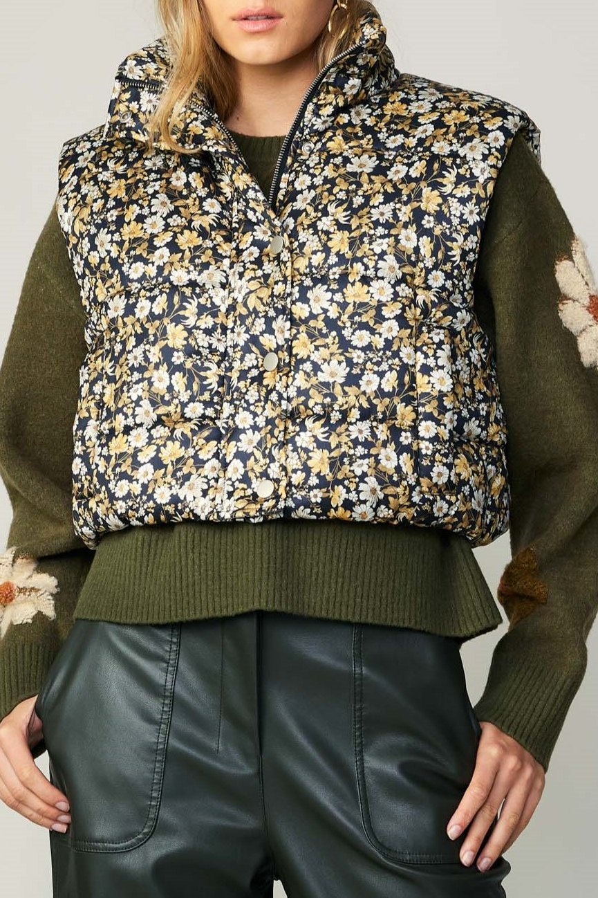This floral puffer vest is great to add to your outfit in the winter! Put this vest over a sweater for a casual look.