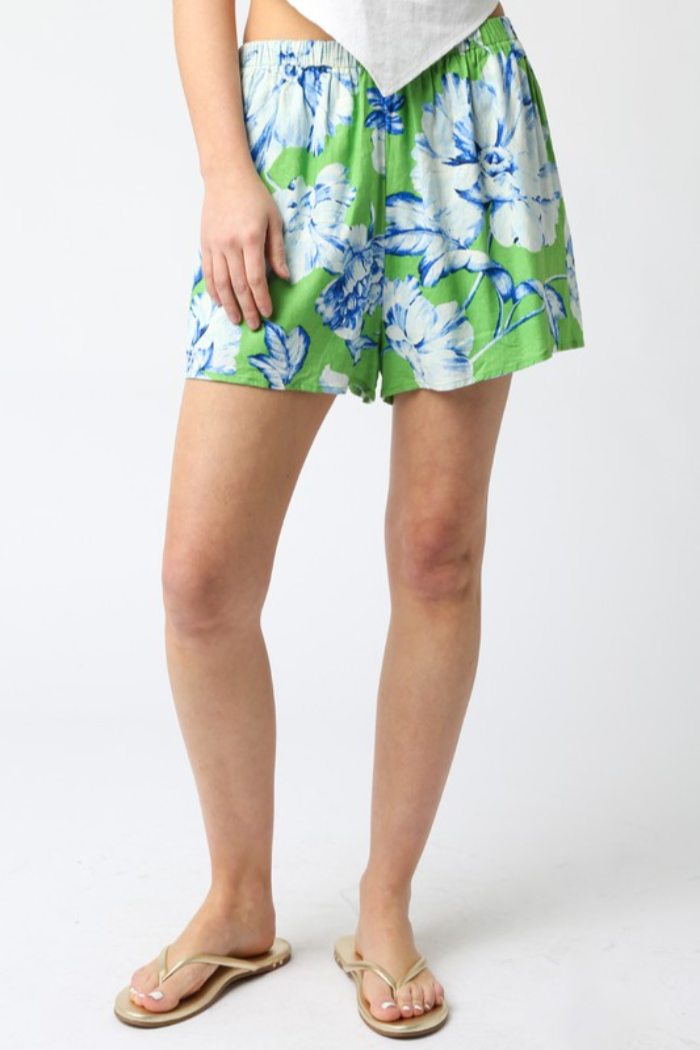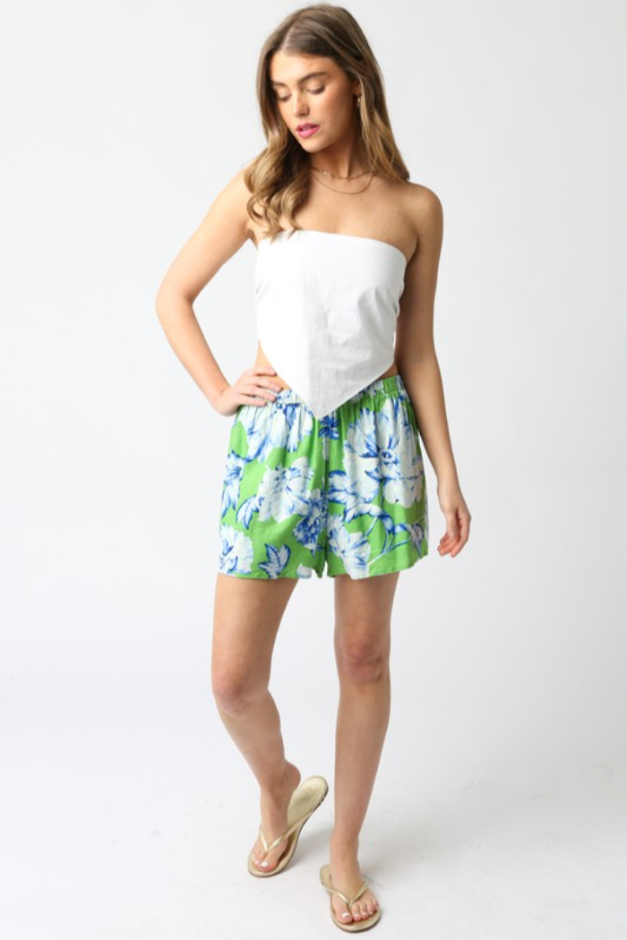 Fun, floral print, elastic waist shorts. Dress up or down with a fitted t shirt.