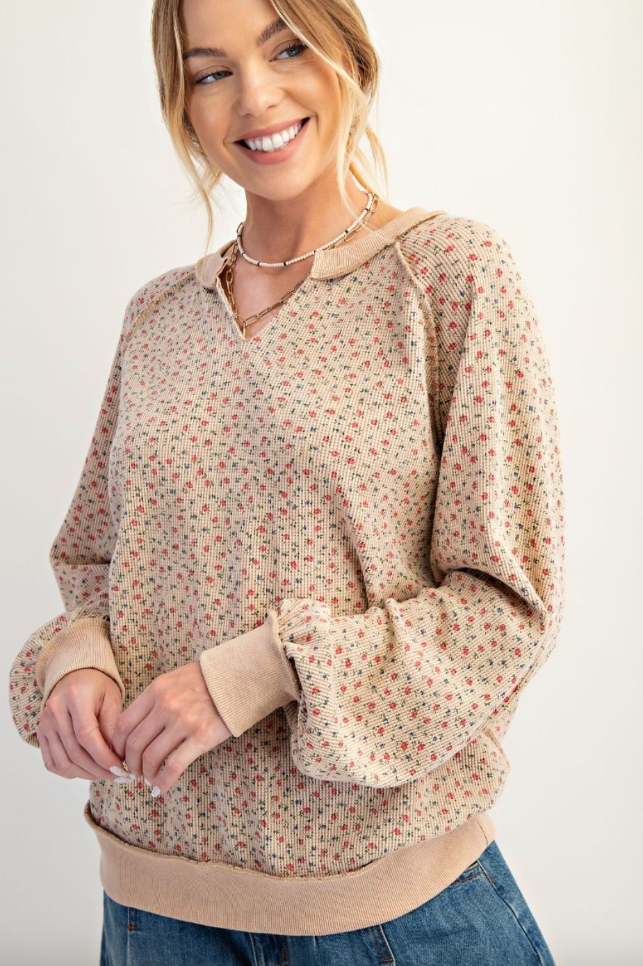 FLORAL PRINT WASHED THERMAL PULLOVER