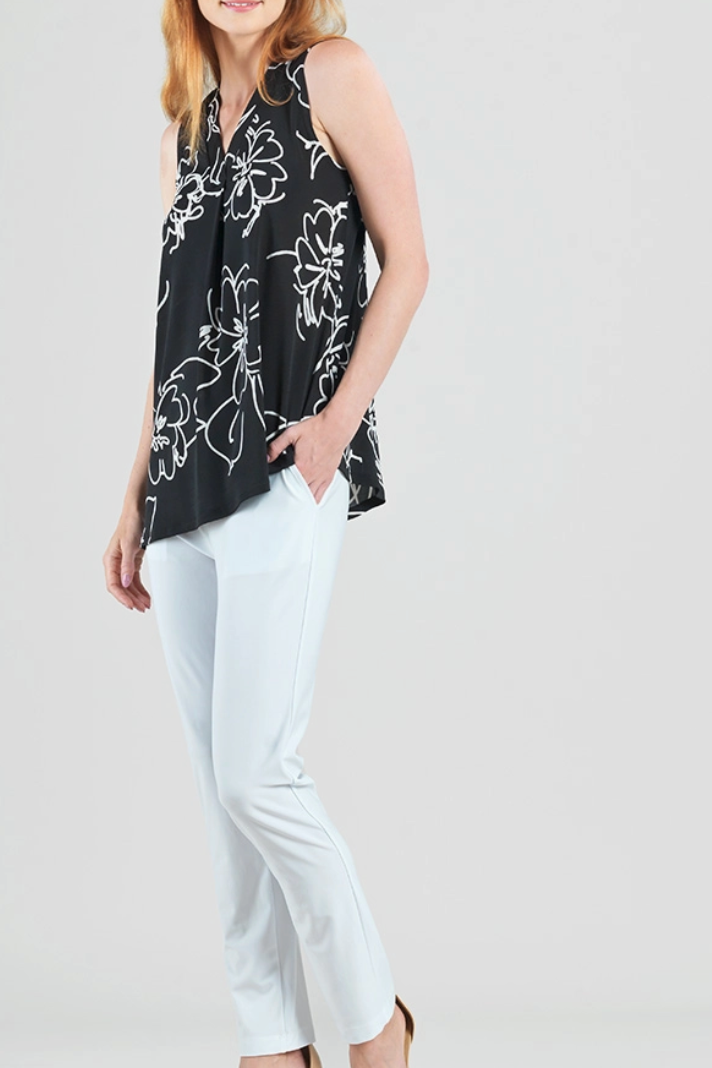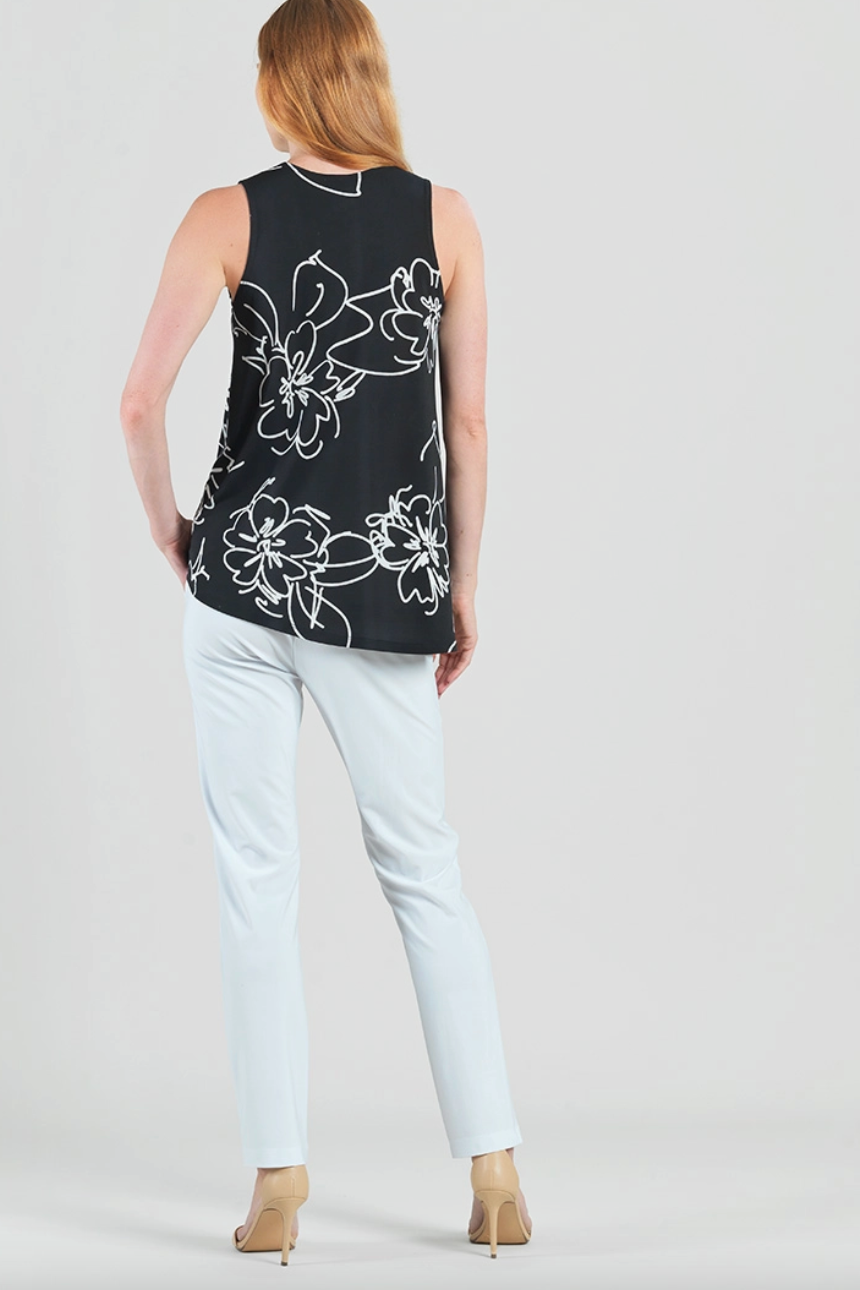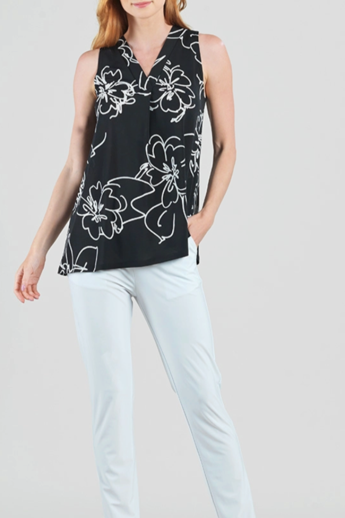 Floral Sketch Soft Crepe V Neck Tank Blouse