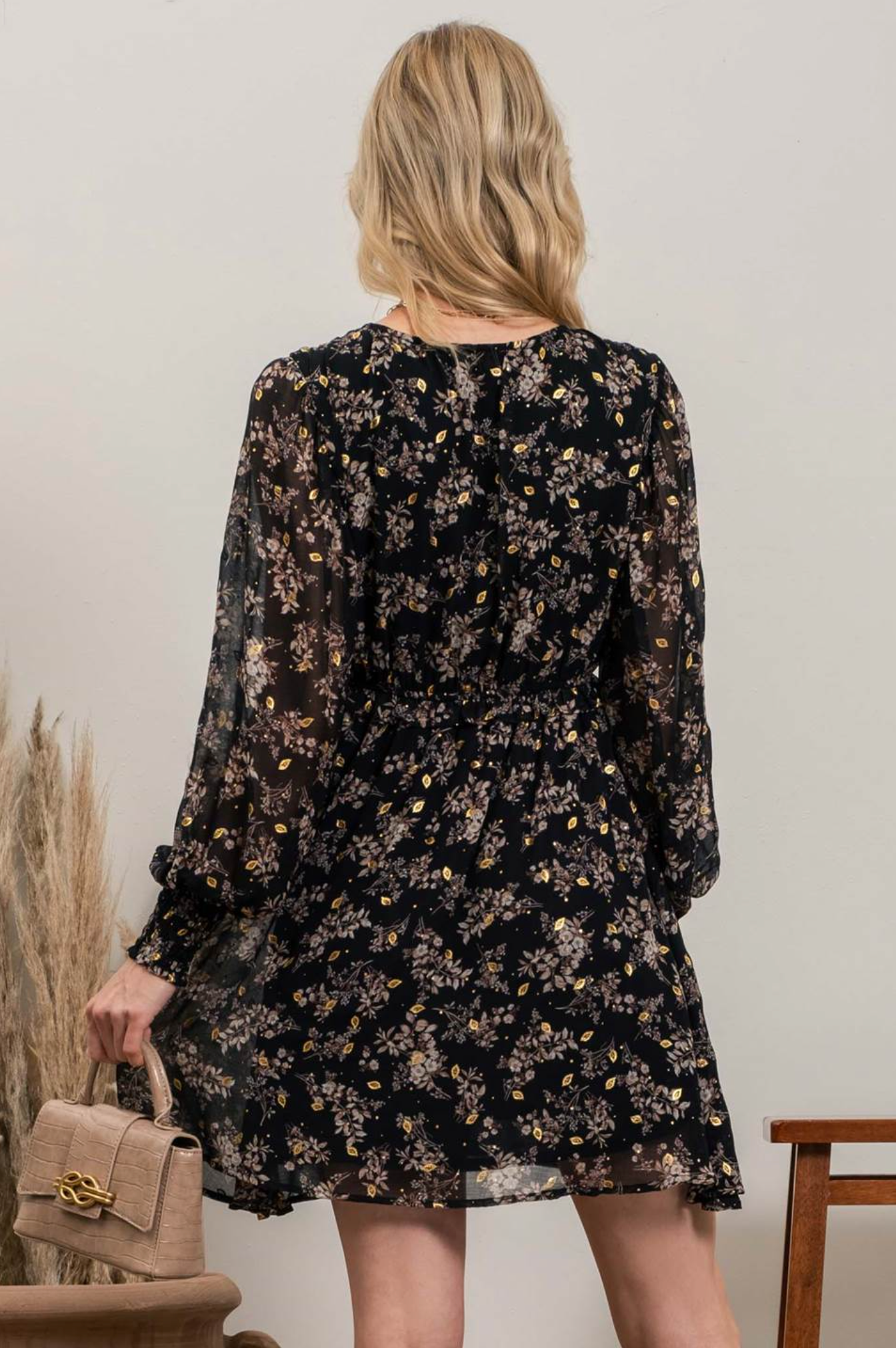 This floral dress can be dressed up or down during the fall. Pair with tall black boots and a denim jacket or sneakers for a casual look. To dress up pair with some heels for an easy fall wedding.