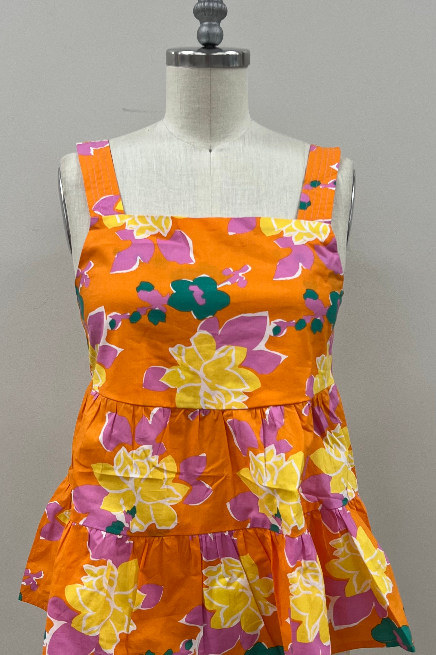 Ruffle hem, bold floral print make this tank top a great piece to pair with capris or short. Head out for the day this top will keep you full of style.