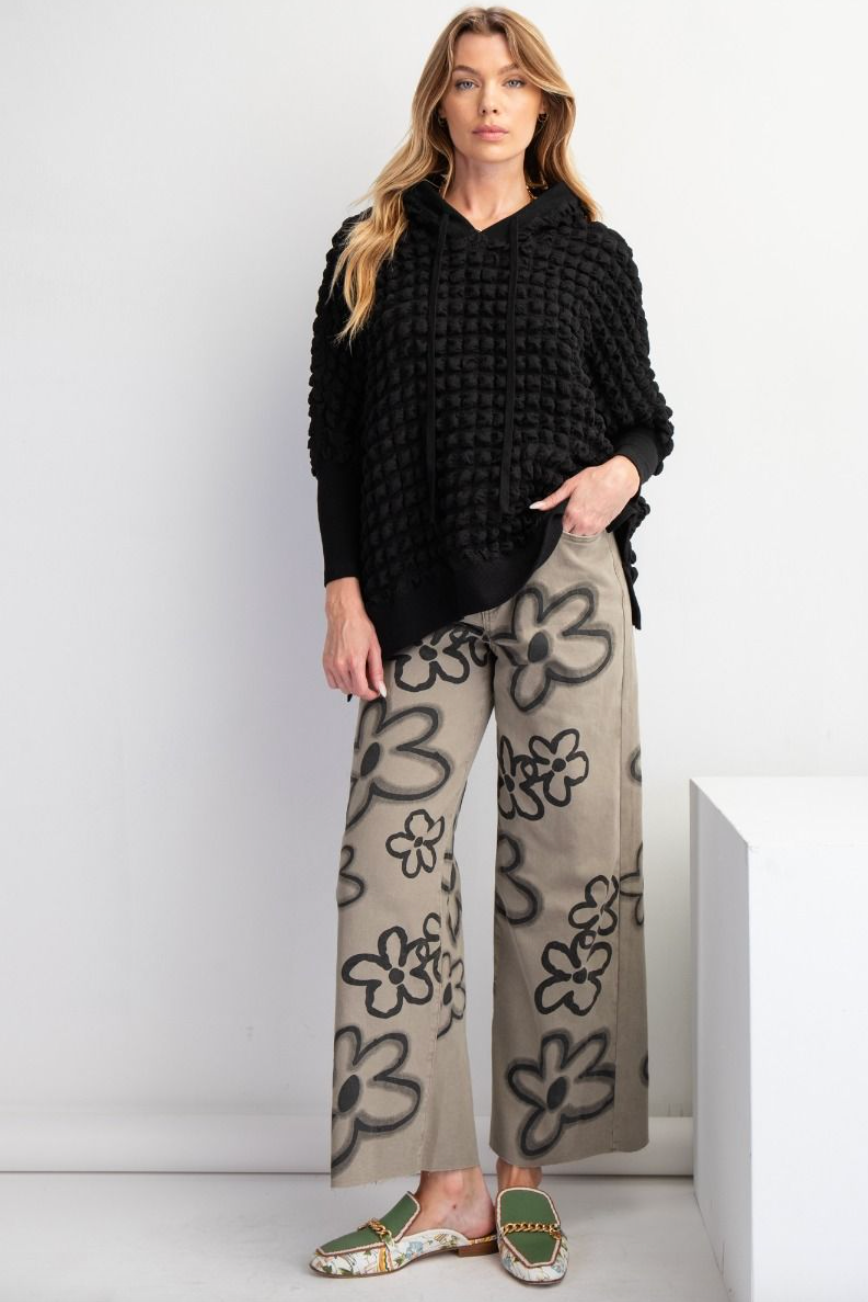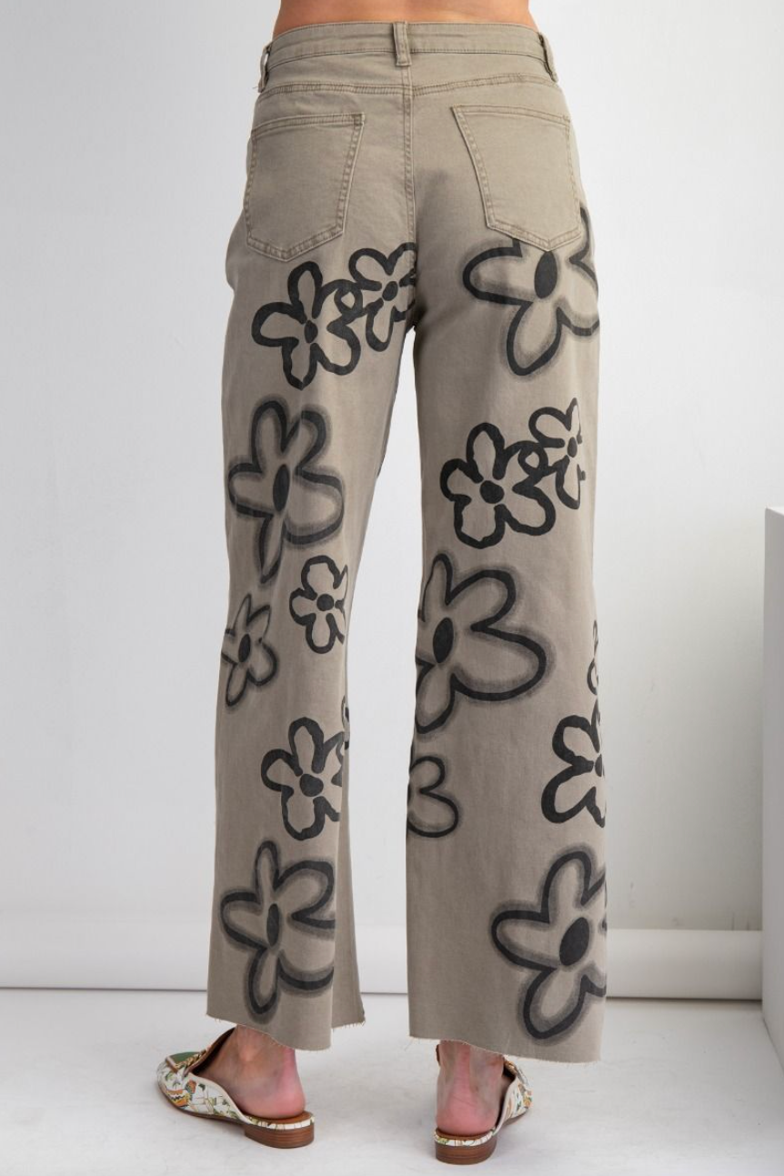 FLOWER PRINT WASHED TWILL WIDE PANTS