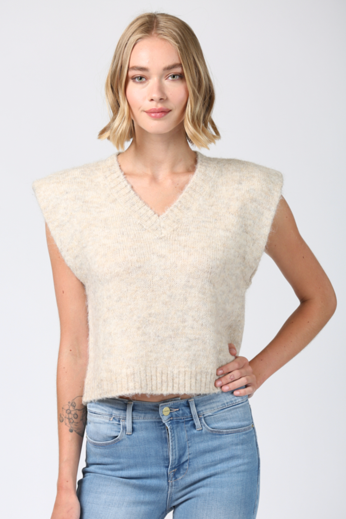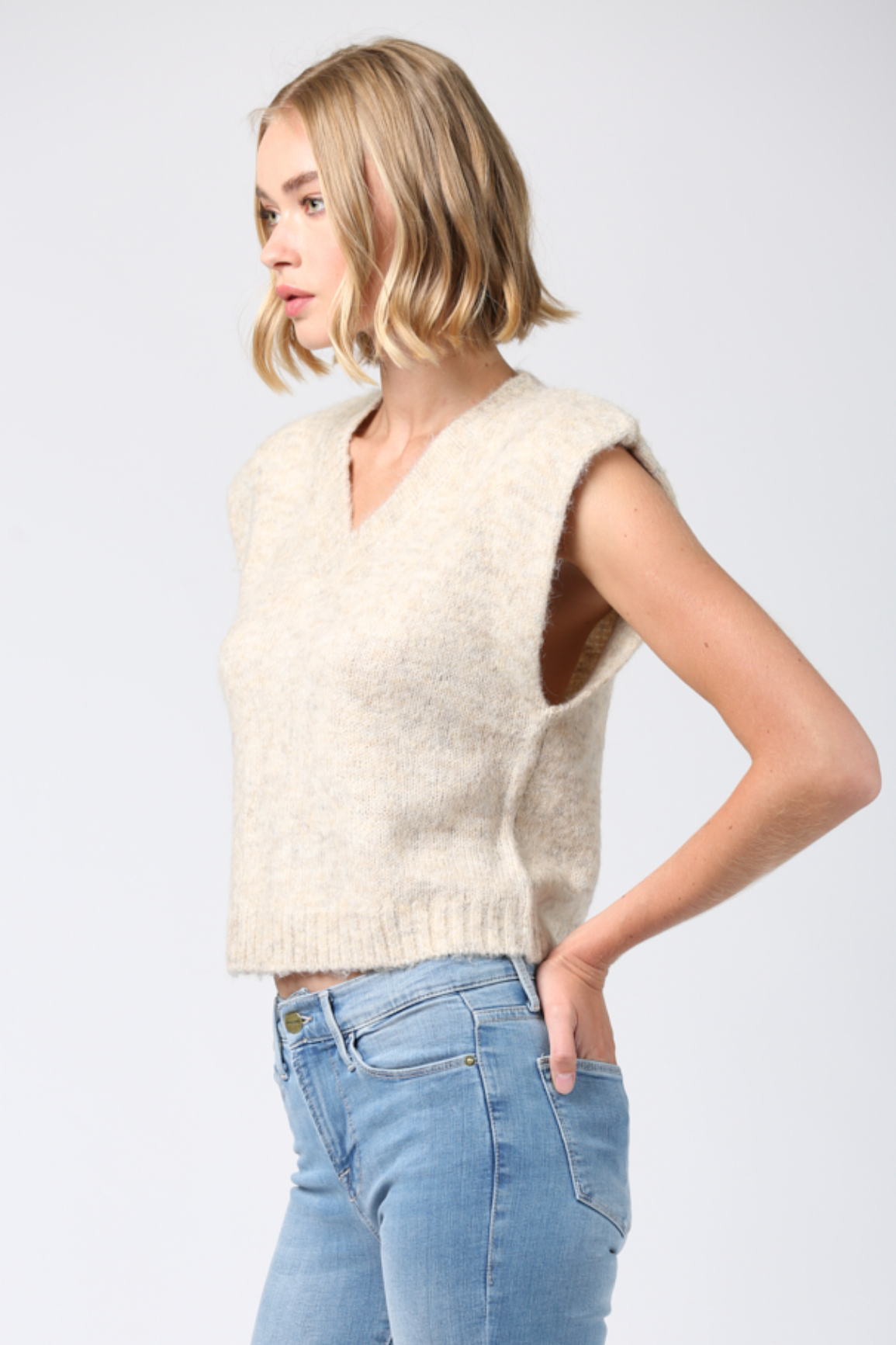 Sweater vests are everywhere this fall. Wear this vest with a fitted top underneath with jeans or solo.
