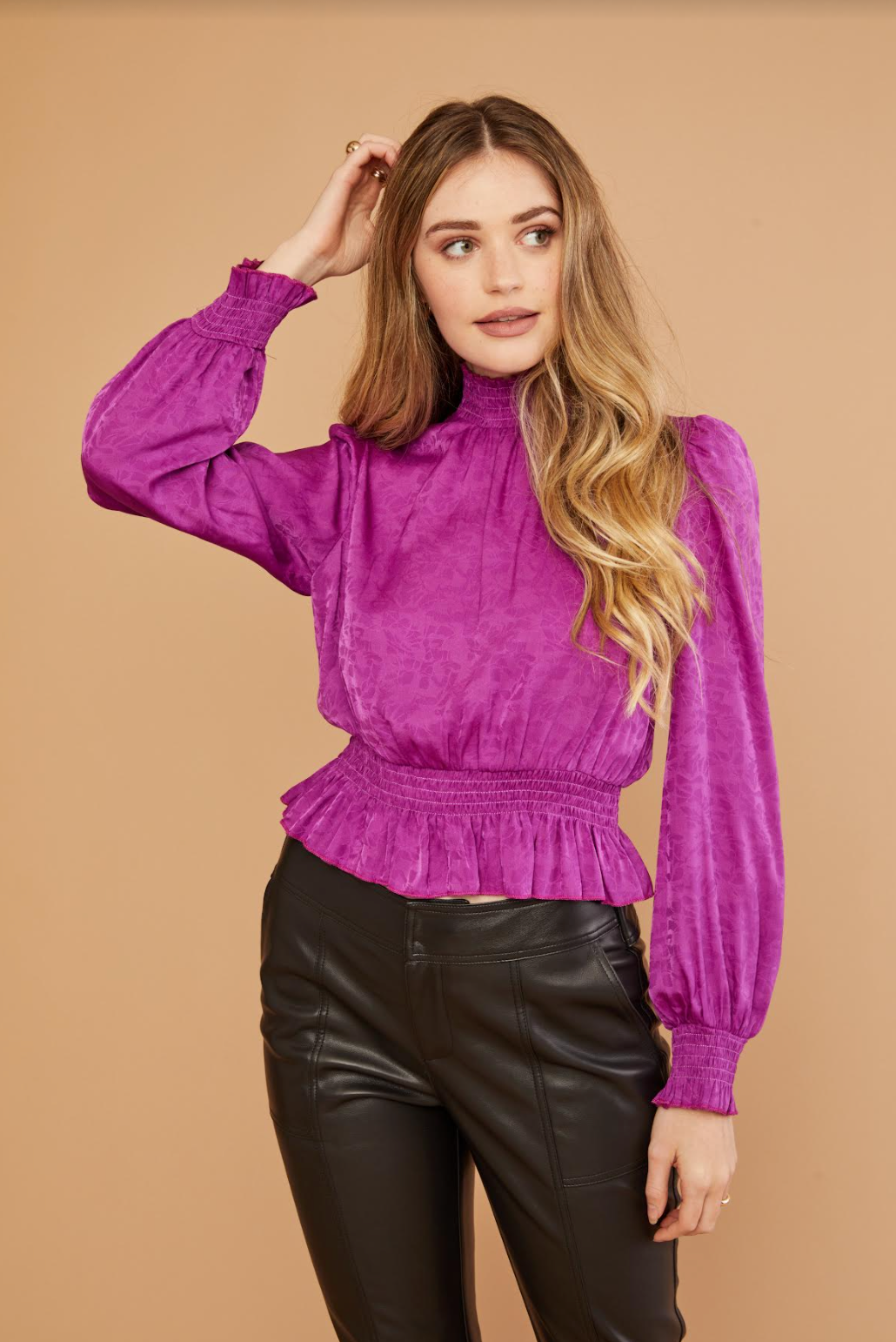 This blouse is great with a fitted pair of black jeans for a night out.