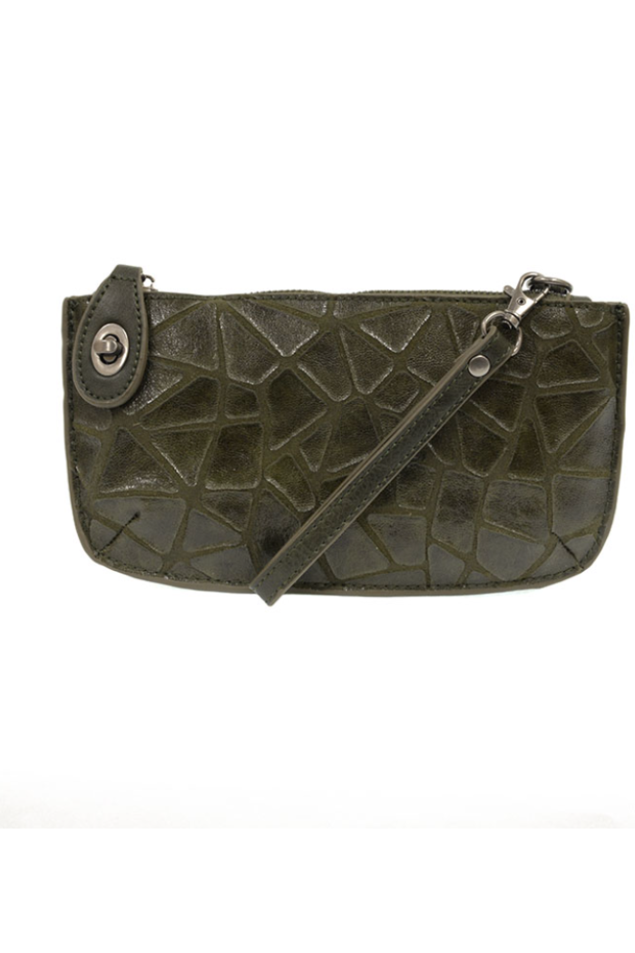 Add some urban cool to your look with our bestselling crossbody turn-lock clutch, now in an edgy geometric patterned vegan leather. Sleek and versatile with removable straps, this style can be worn as a crossbody, carried as a wristlet or a clutch, even doubles as a wallet! With interior credit card slots and enough room to carry your phone, sunglasses, and any other must-haves.