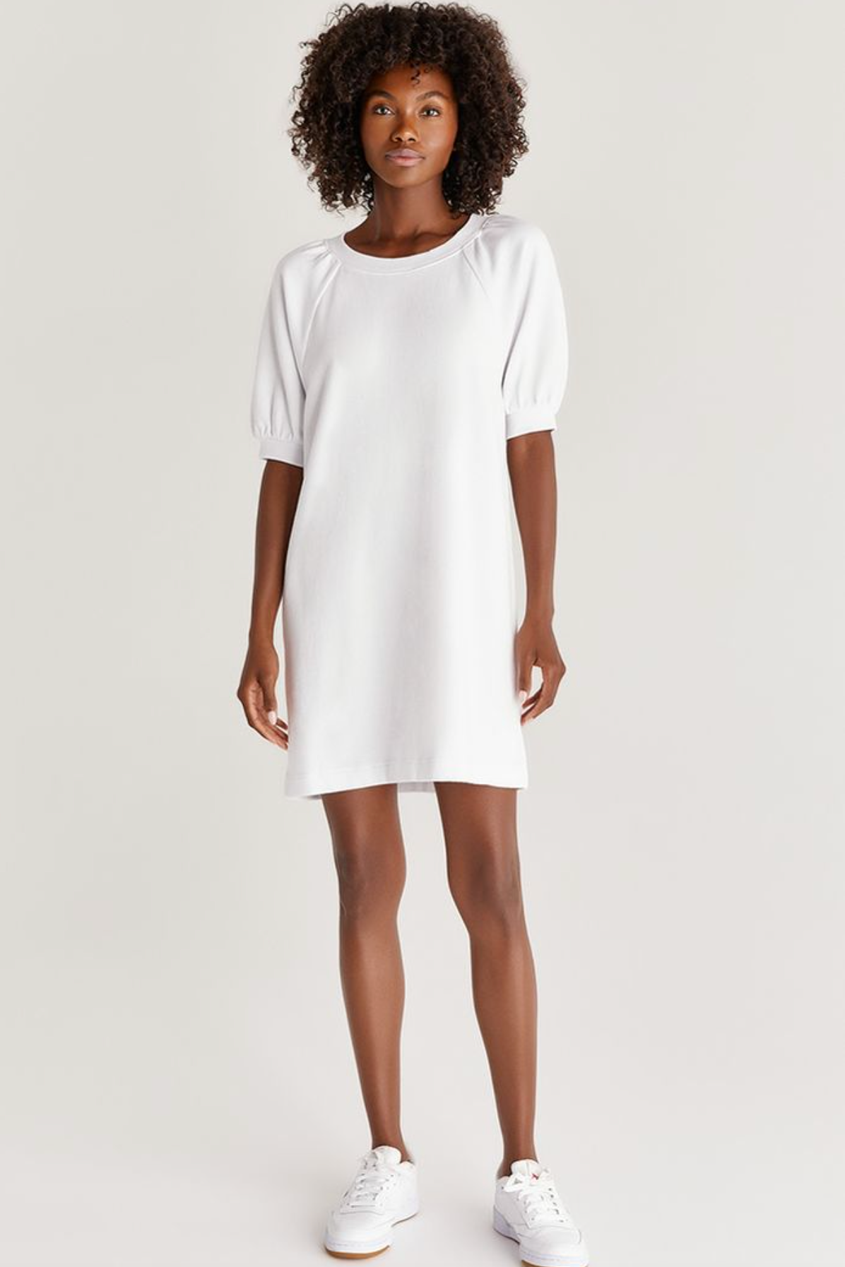 An elevated French Terry dress that can be dressed up or down, the Gianna Terry dress is a take on the favorite Gianna Terry Tee. Providing an effortless shift silhouette, and that puff shoulder that gives this dress that special touch.